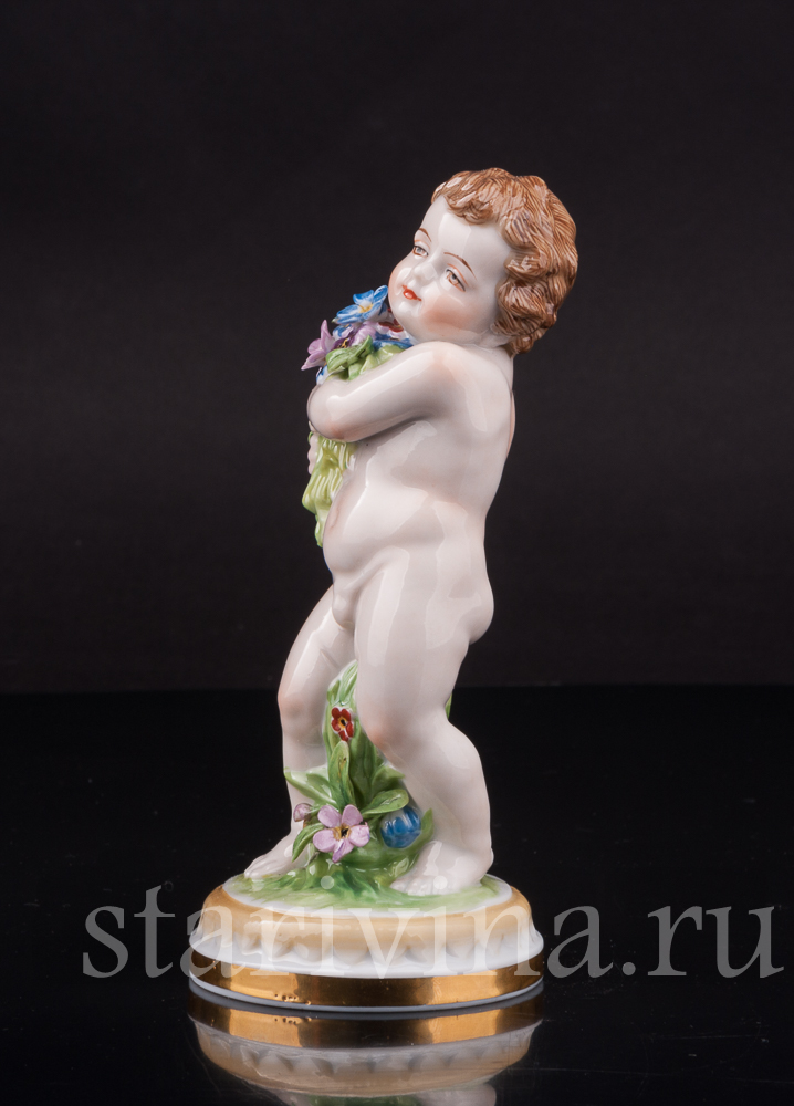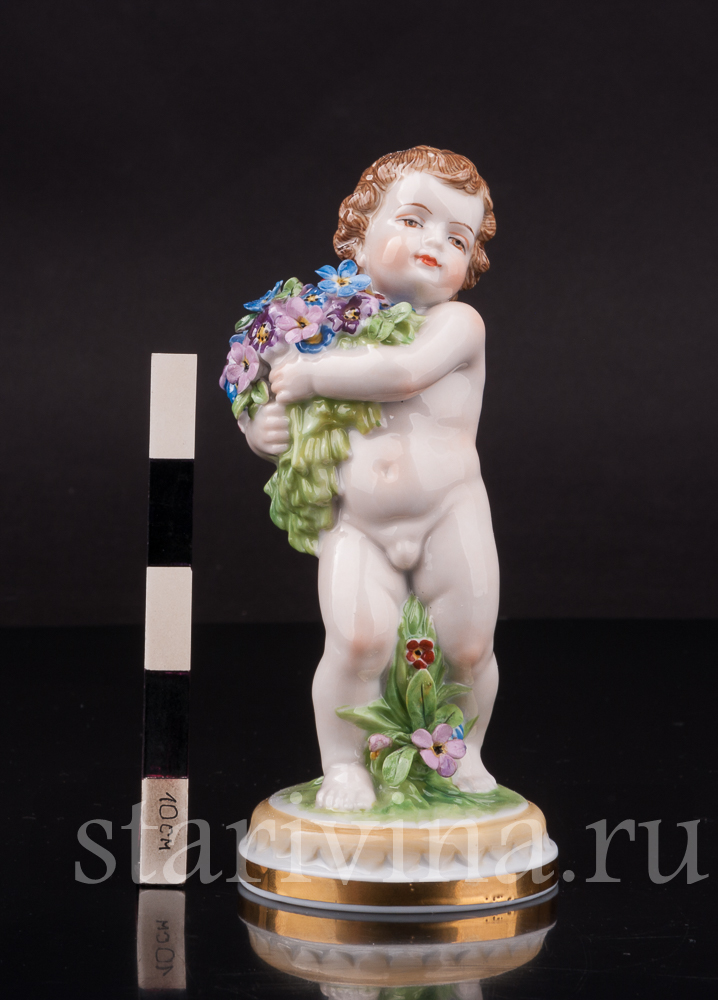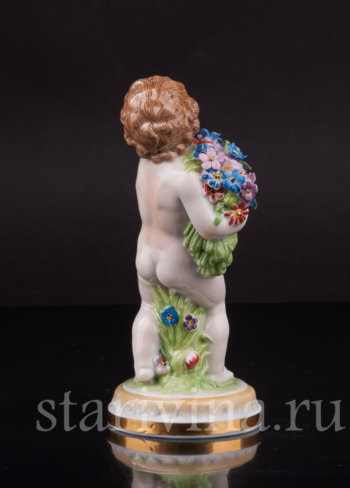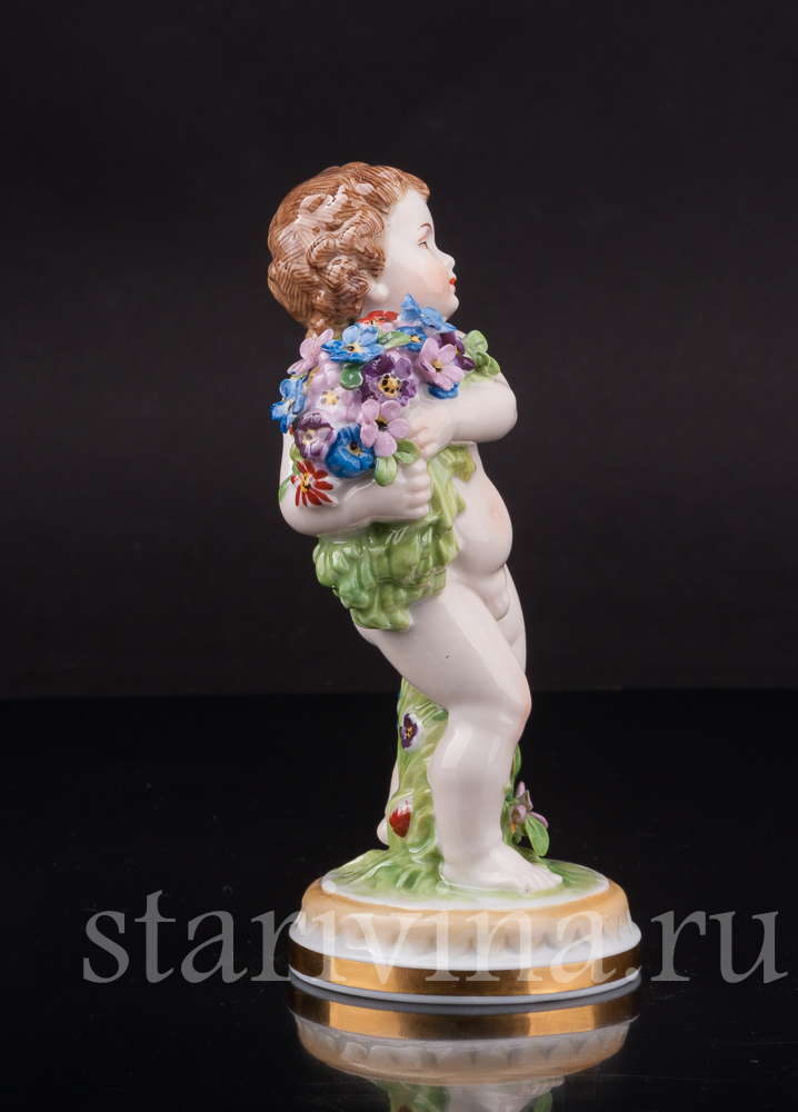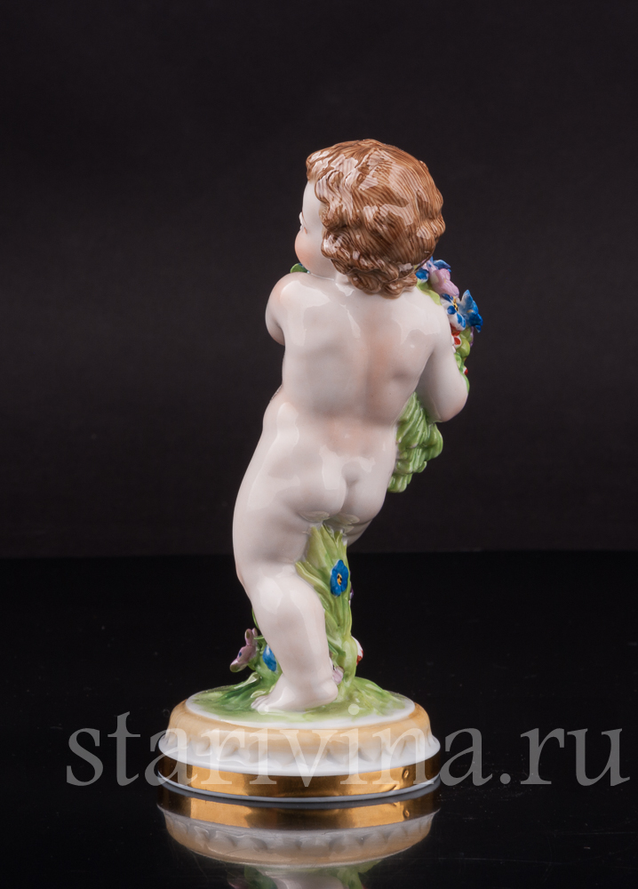Очаровательная фарфоровая фигурка путти с цветами - аллегории весны из серии четырех времён года Muller & Co.