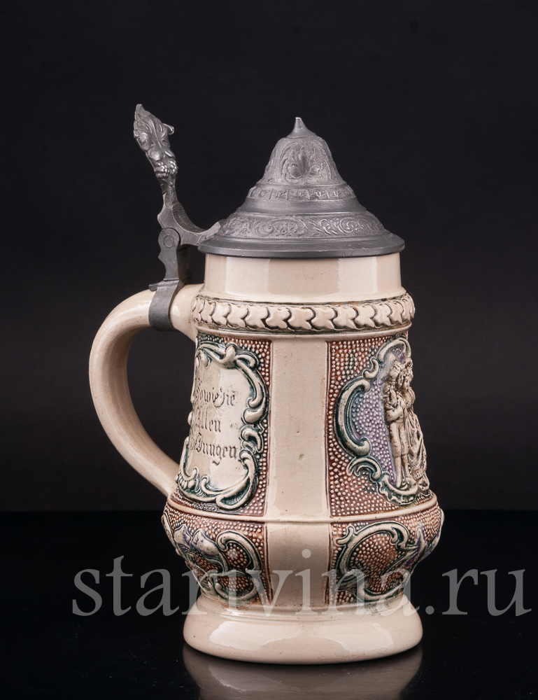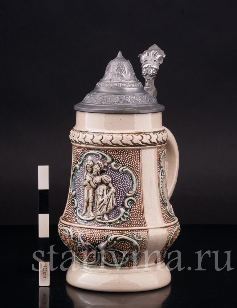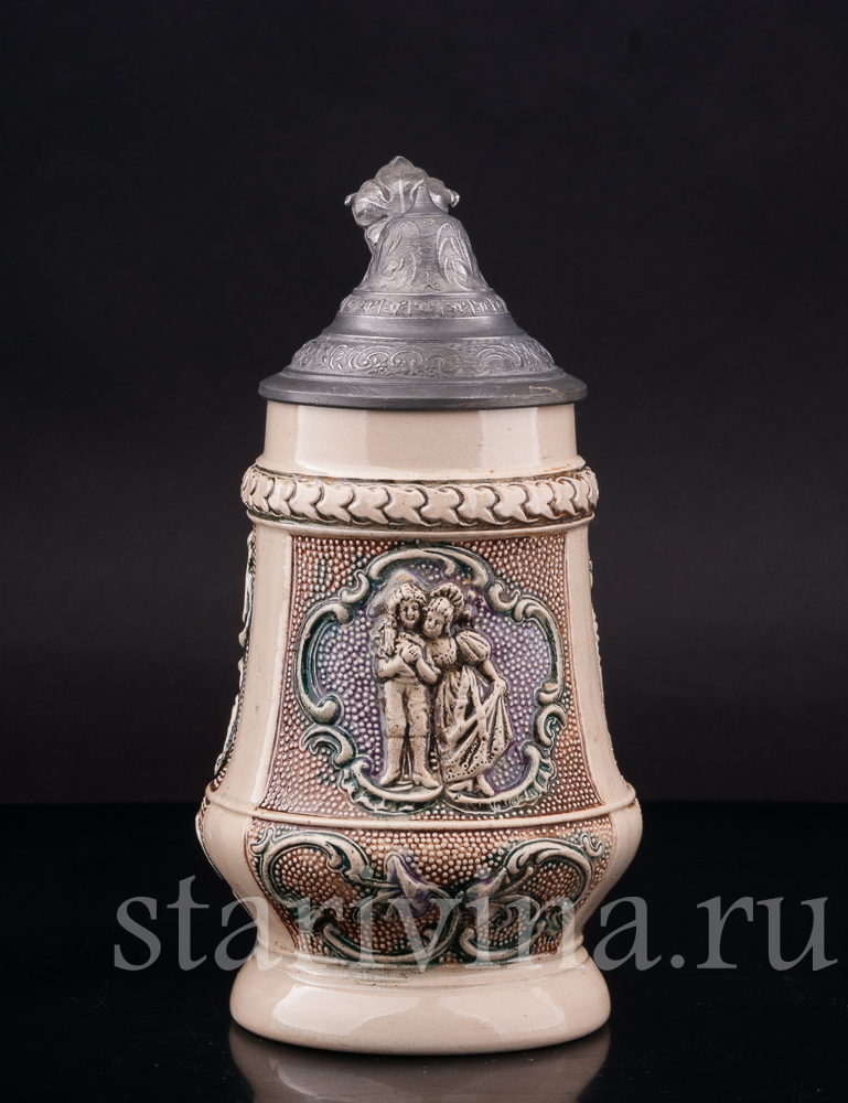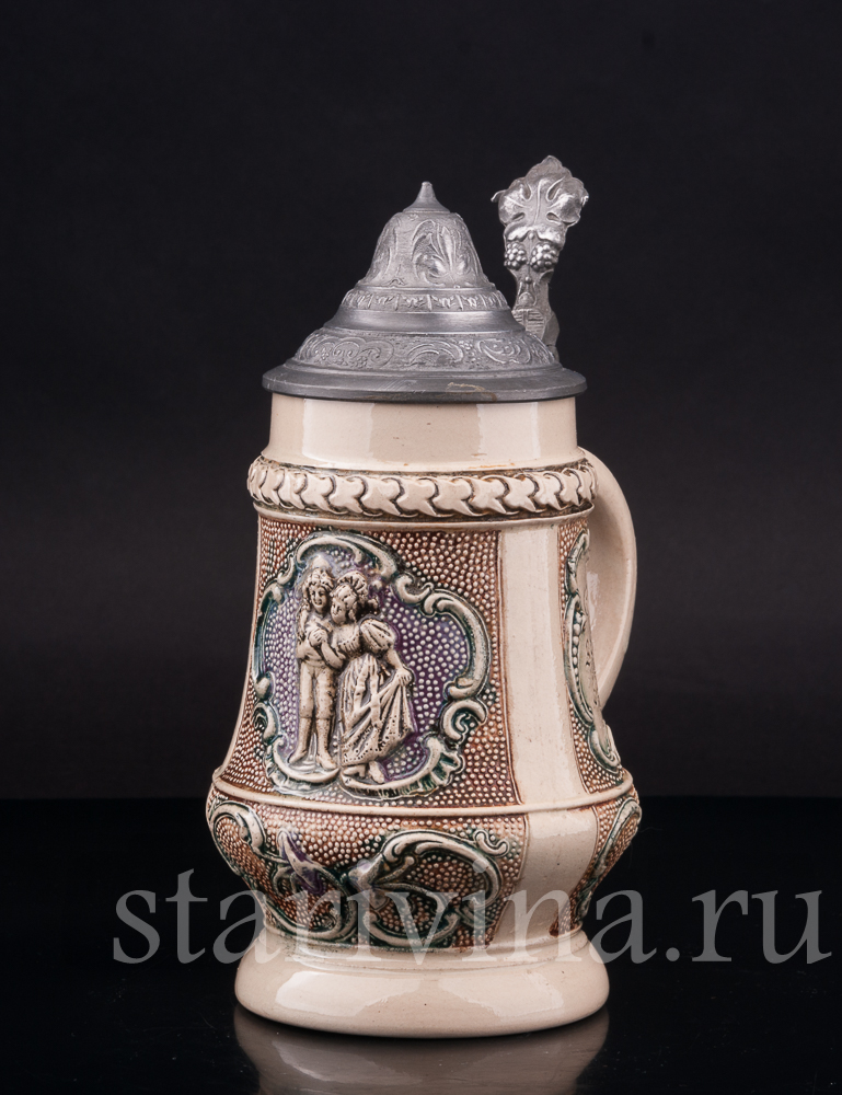 Старинная пивная кружка Влюблённая пара, 4/10 л, Diesinger, Германия, нач. 20 в.