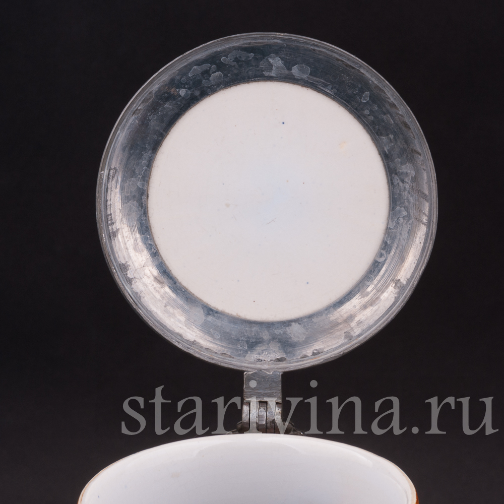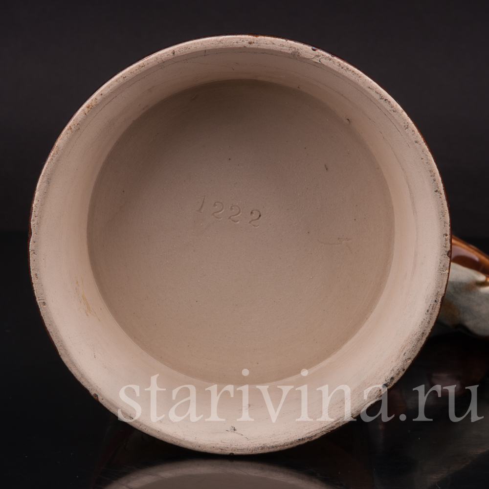 Старинная литрова кружка изготовленна на фабрике Йохана Петера Тевальта. Основанная около 1852 года, фирма продолжала свою деятельность на протяжении нескольких поколений, а выпуск кружек осуществлялся с 1887 по 1930 гг. Многие работы фабрики схожи с изделиями другого известного производителя — фабрики J.W.Remy. Обе компании работали с общими формами, совместно использовали технологии, рабочих и даже печи для обжига.