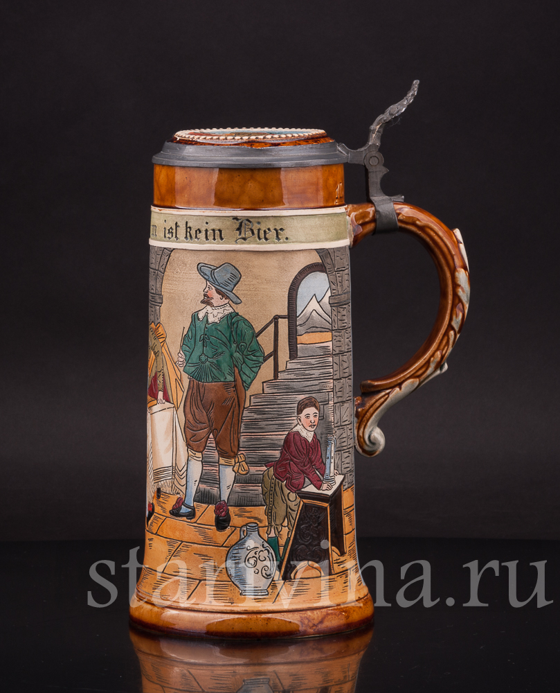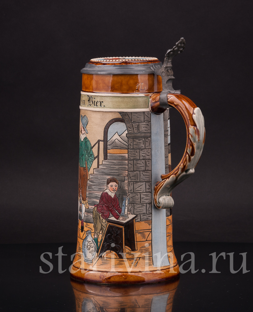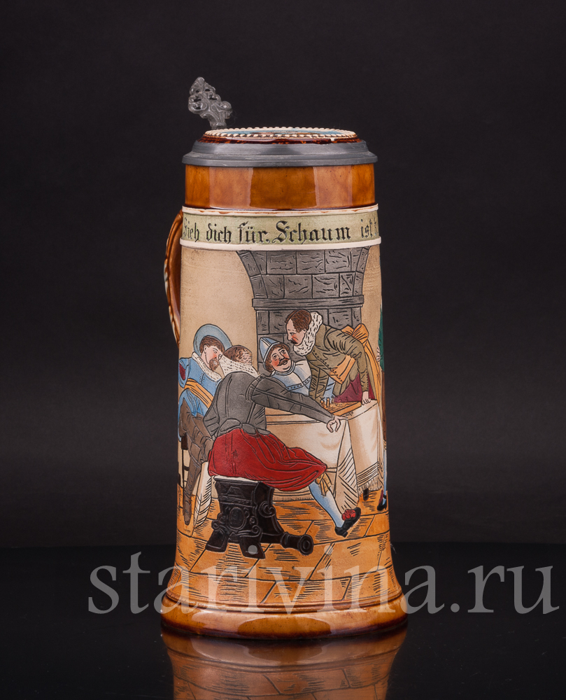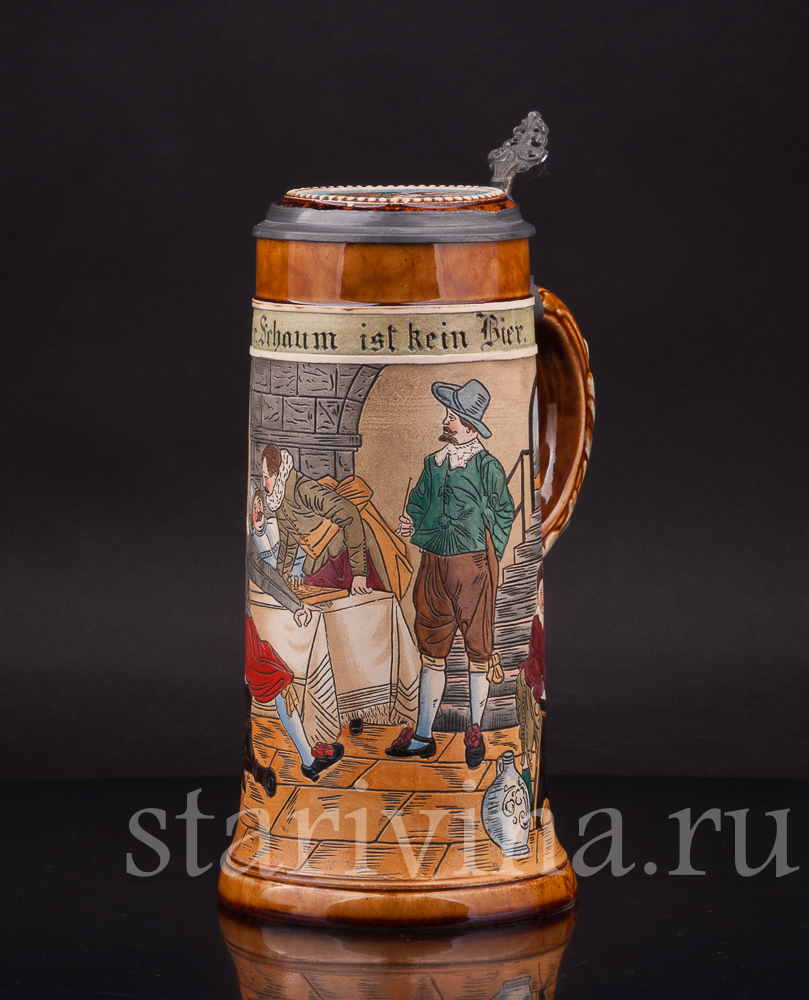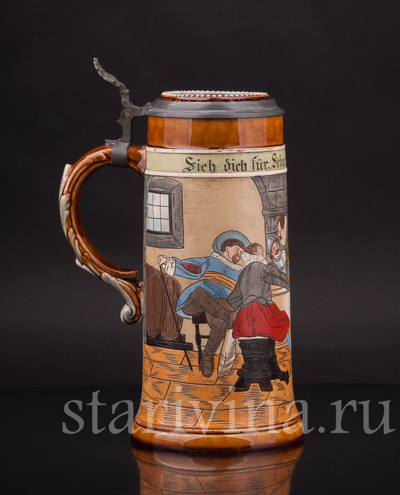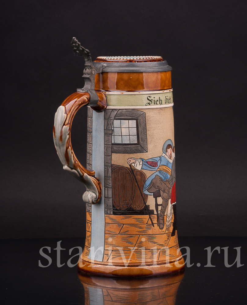 Старинная пивная кружка В таверне, 1 л, J.P. Thewalt, Германия, кон. 19 - нач. 20 вв.