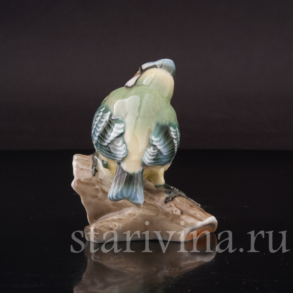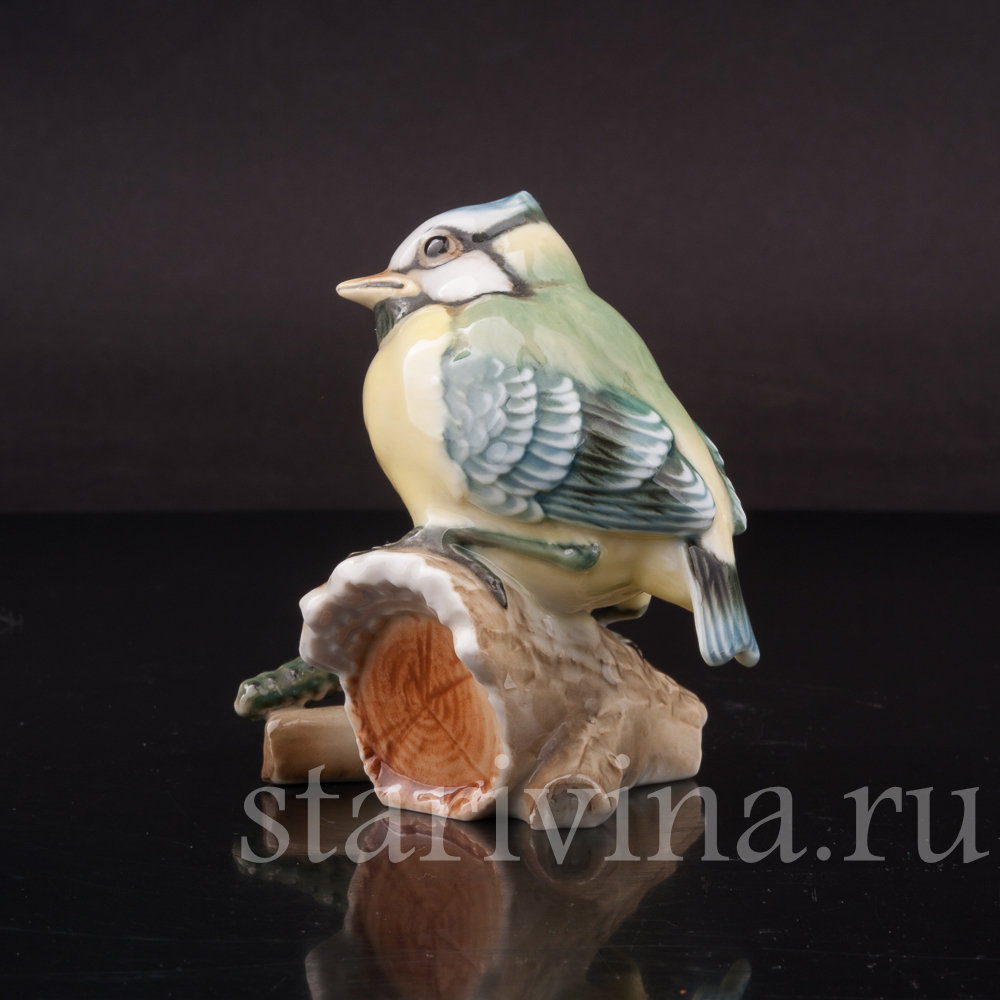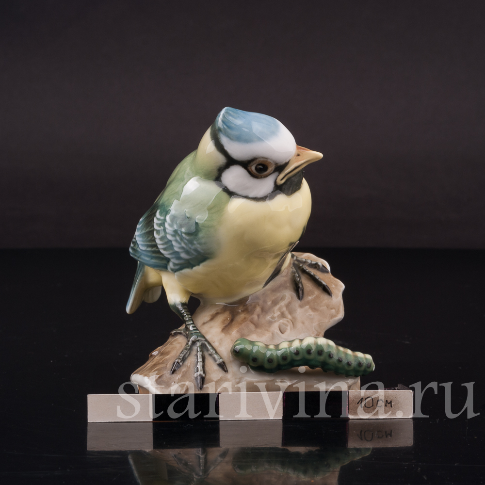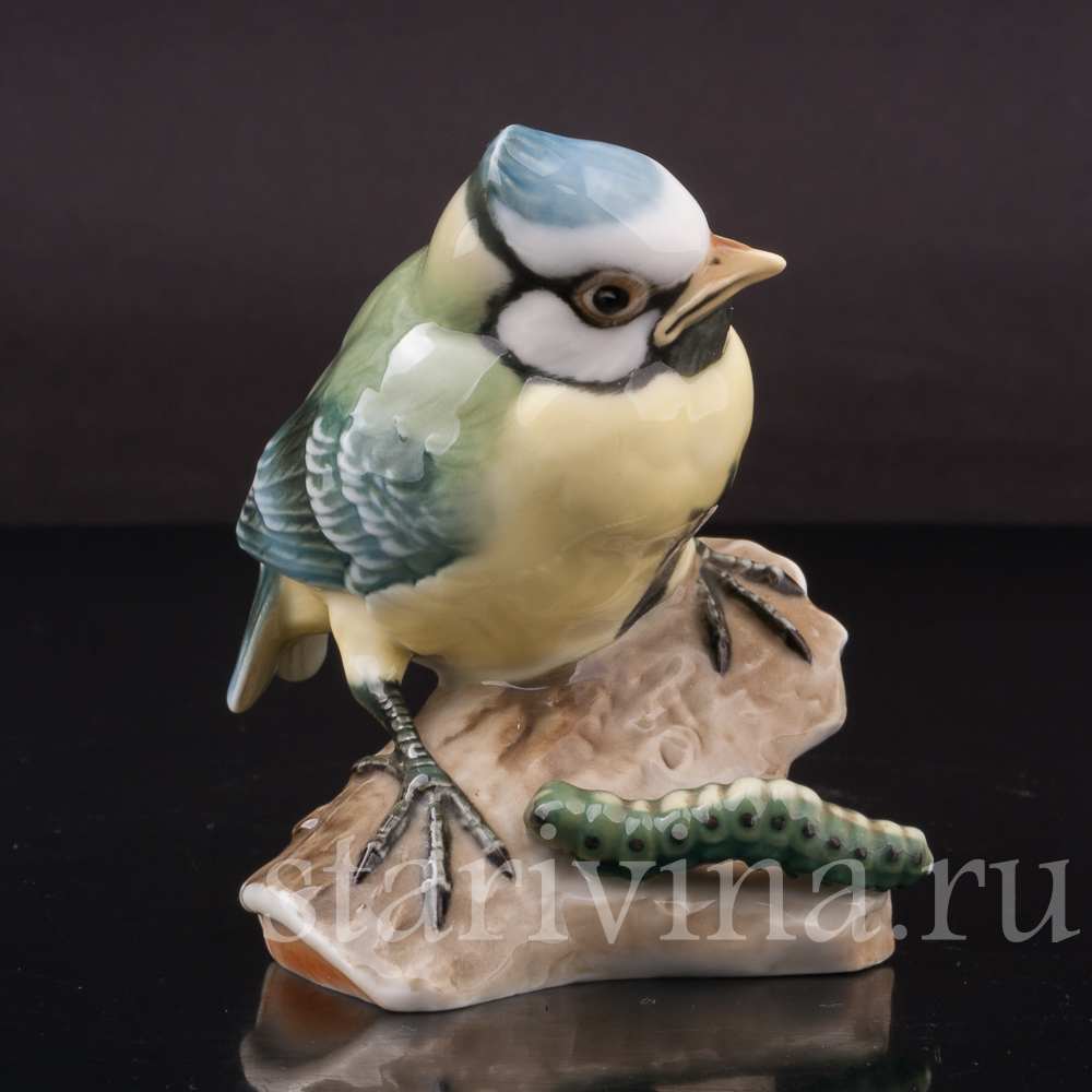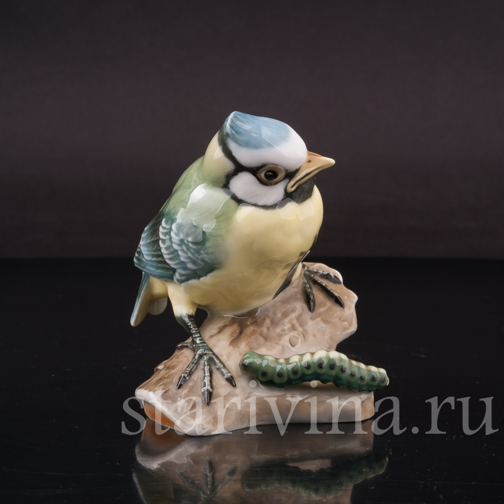 Фигурка птицы из фарфора Птенец лазоревки с гусеницей, Hutschenreuther, Германия, 1970 гг.