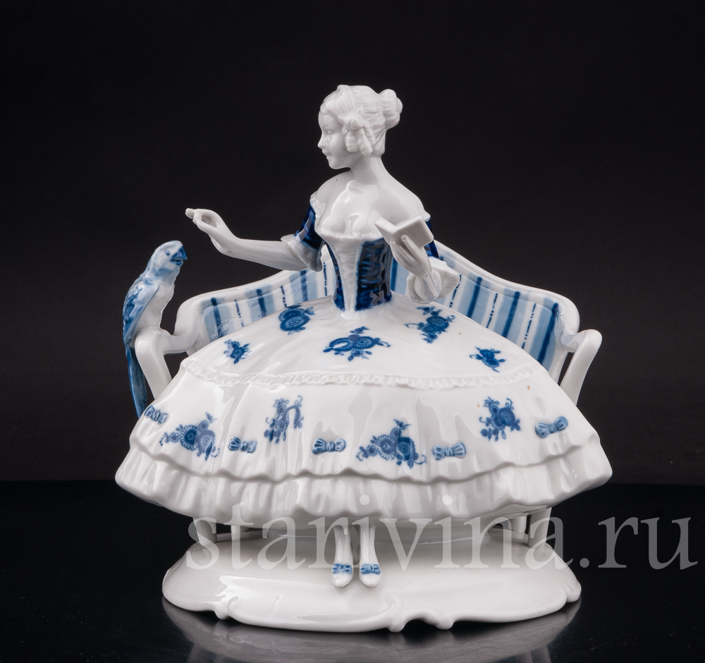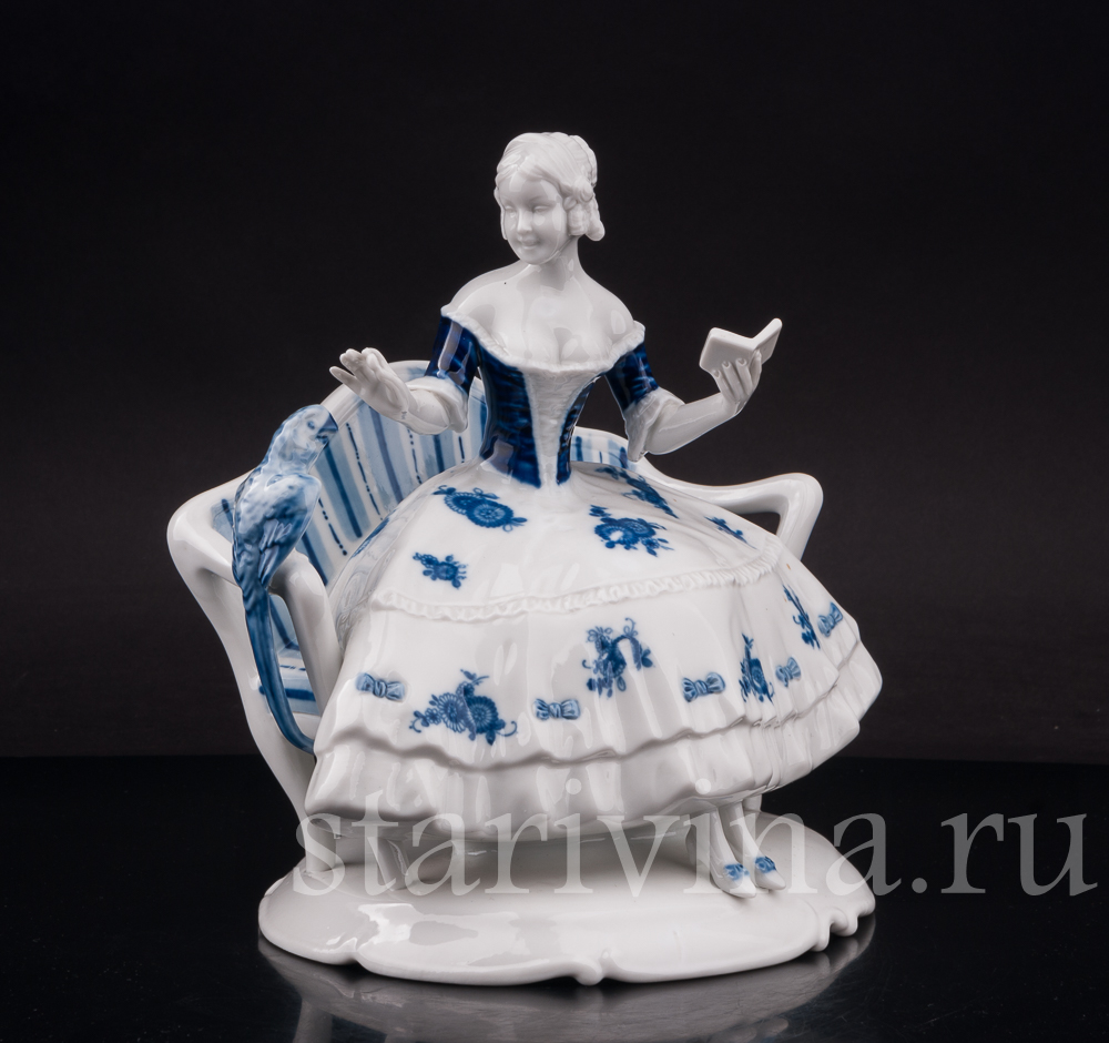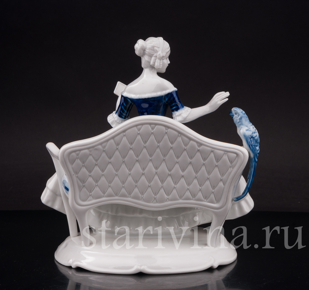 Фигурка из фарфора Девушка с попугаем на диване, Unterweissbach, Германия, кон. 20 в.