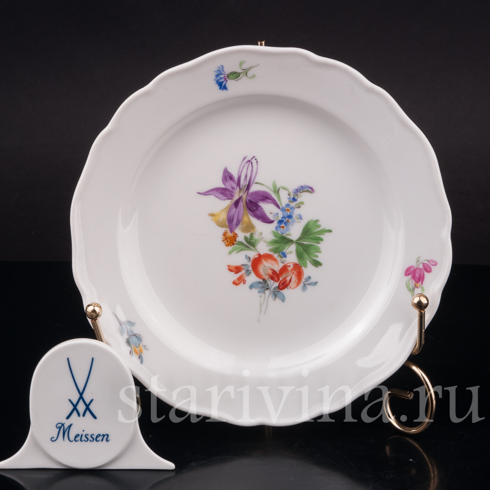 Изящная пирожковая тарелка с цветочной росписью - классический предмет из коллекции посуды знаменитой фабрики Meissen. Первая в Европе фарфоровая мануфактура на протяжении всей своей многовековой истории чтит традиции и сохраняет великолепное качество изделий.