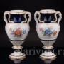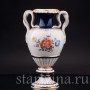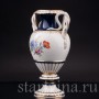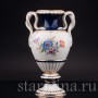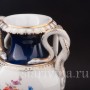 Ваза украшена подглазурным кобальтом (темно синие участки), золочением и росписью в виде цветочных букетов, ставших также одним из фирменных декоров фабрики.