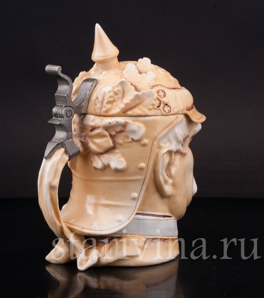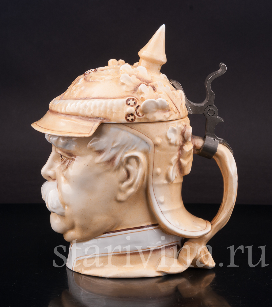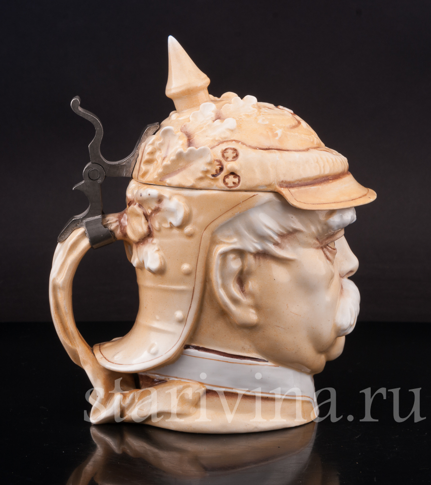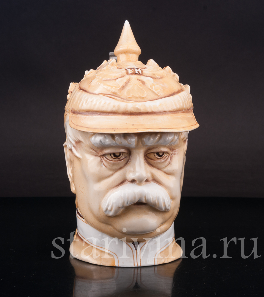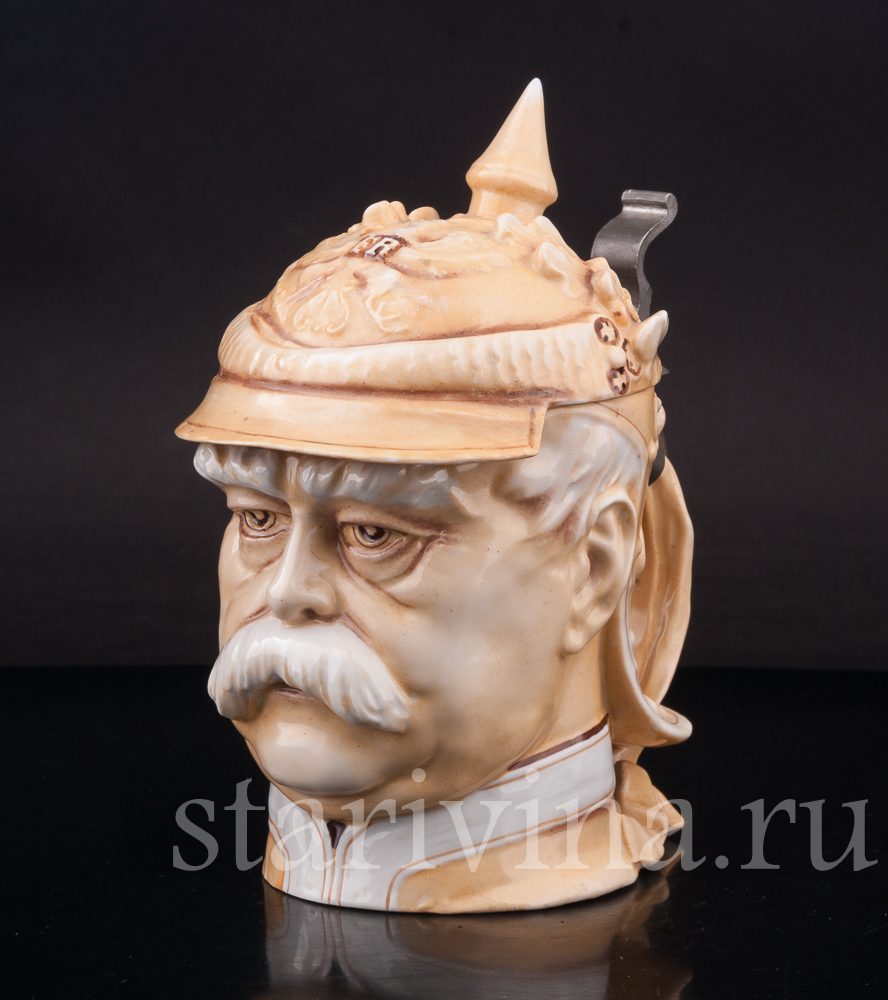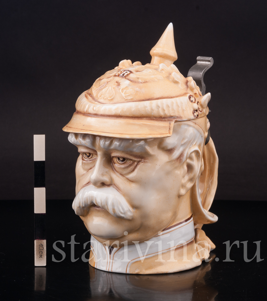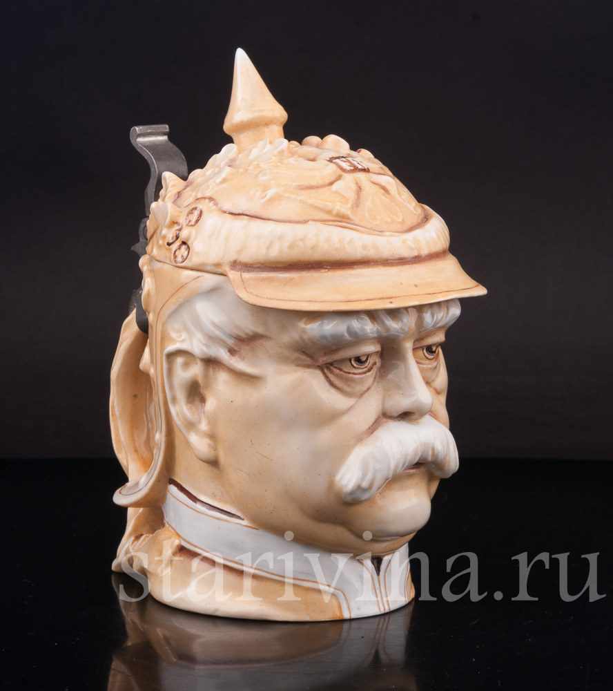Старинная характерная кружка в виде головы Отто фон Бисмарка — германского государственного и политического деятеля XIX века, первого канцлера Германской империи. Современники Бисмарка за его решительность, жёсткость и прагматичный подход в политике называли «Железным канцлером».