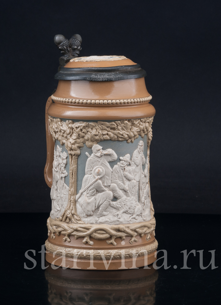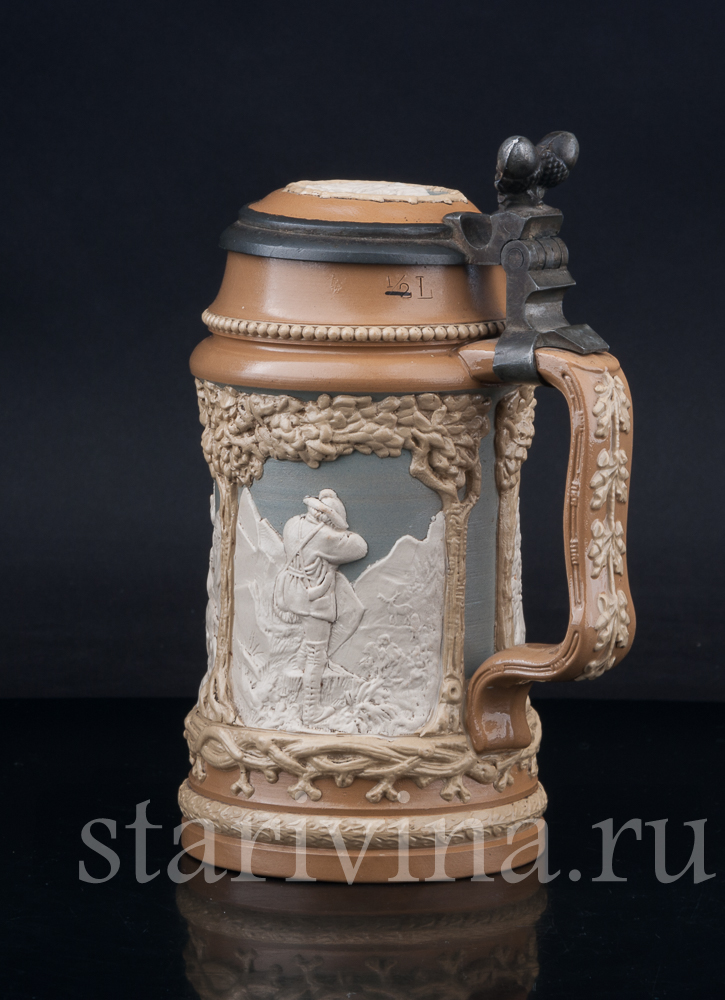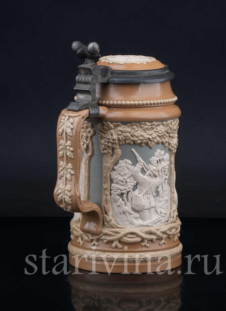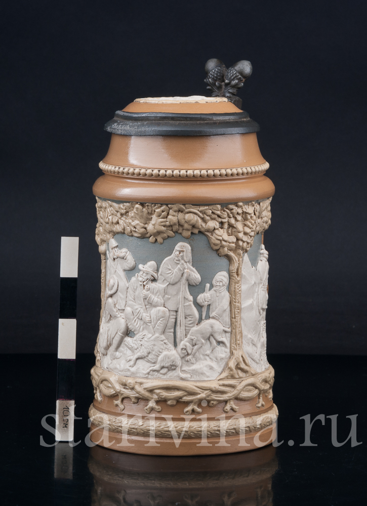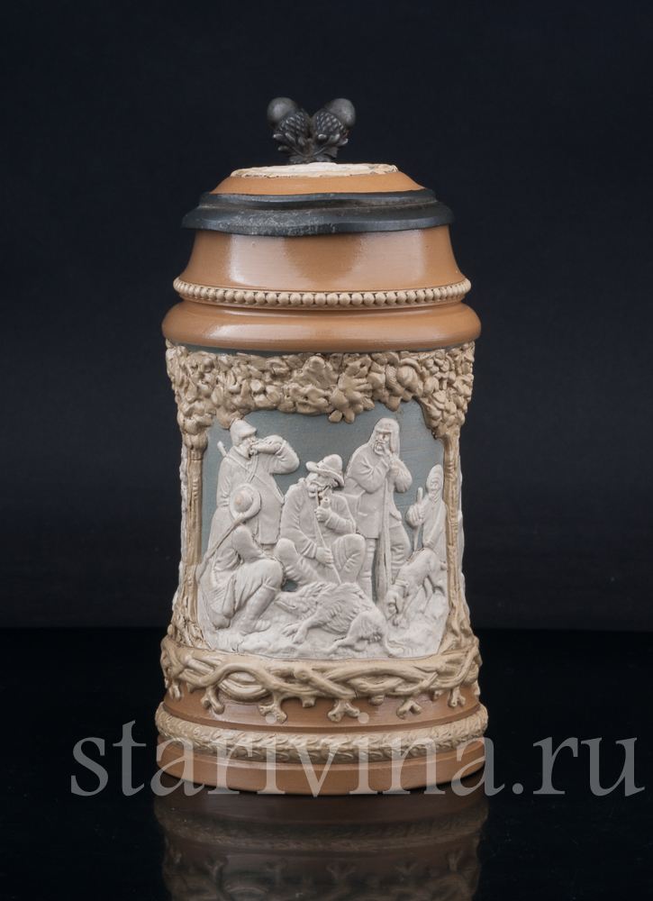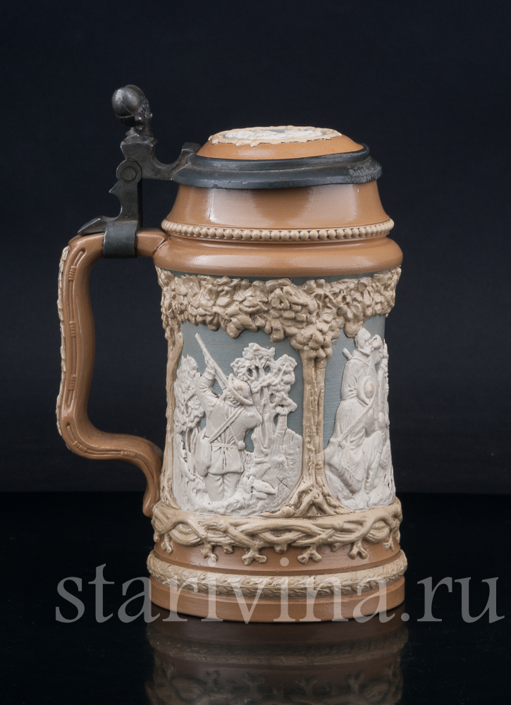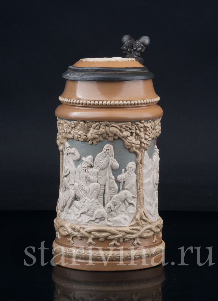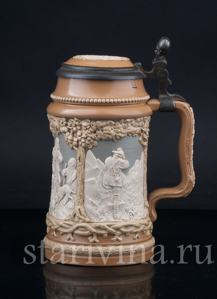 Старинная пивная кружка Охотники, 1/2 л, Villeroy & Boch, Германия, 1893 г.