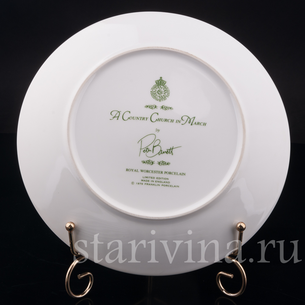Декоративная тарелка из фарфора Сельская церковь в марте, Royal Worcester, Великобритания, 1979 г.