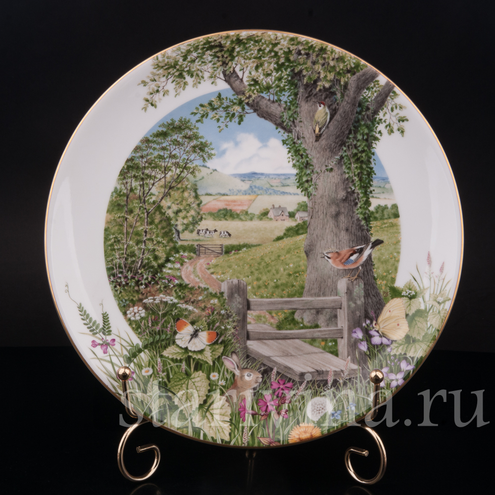Декоративная тарелка из фарфора Сельская дорога в мае, Royal Worcester, Великобритания.
