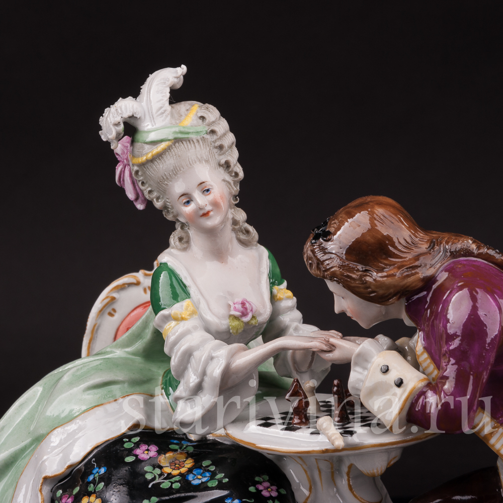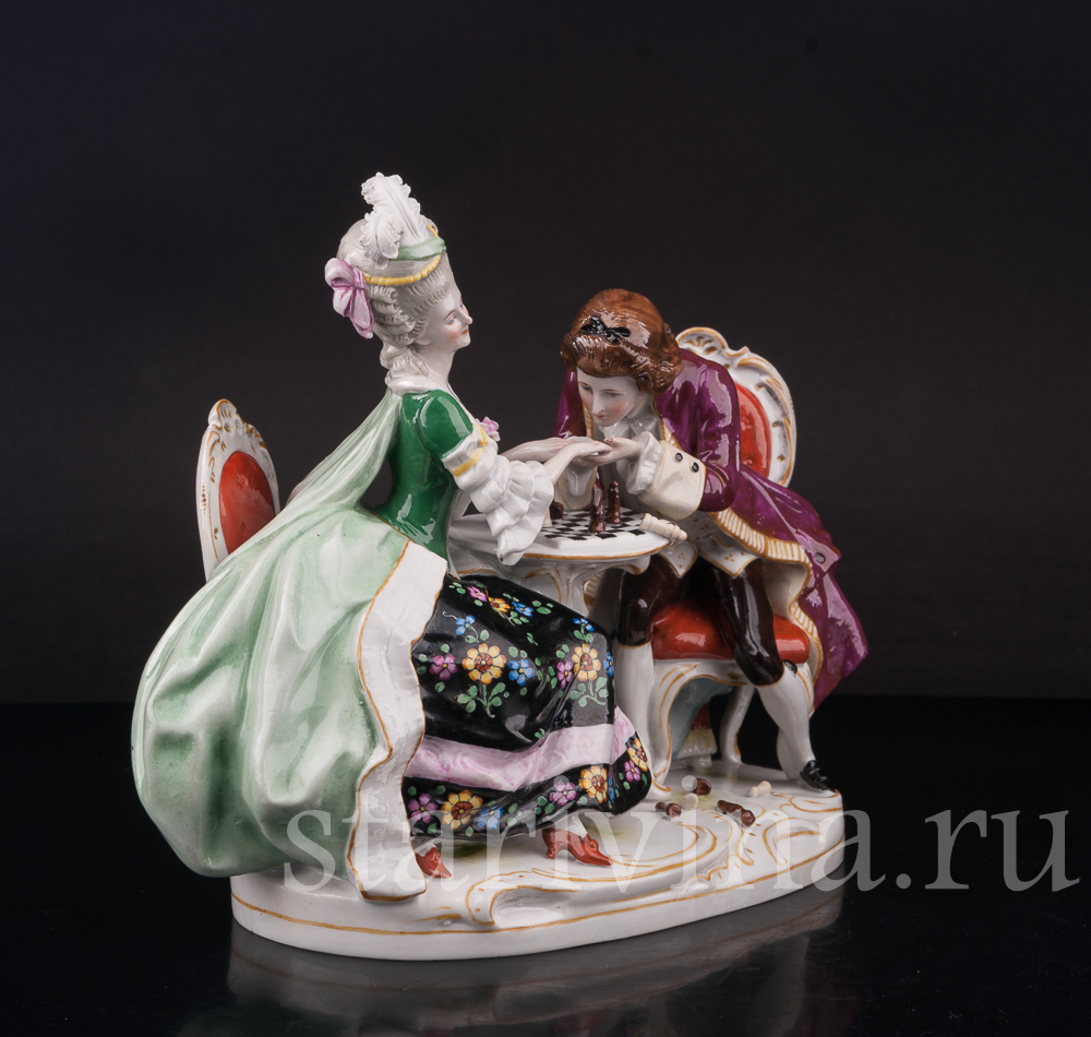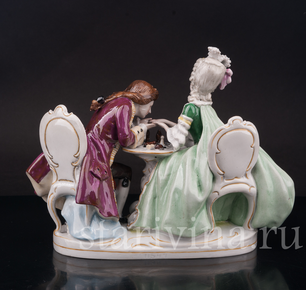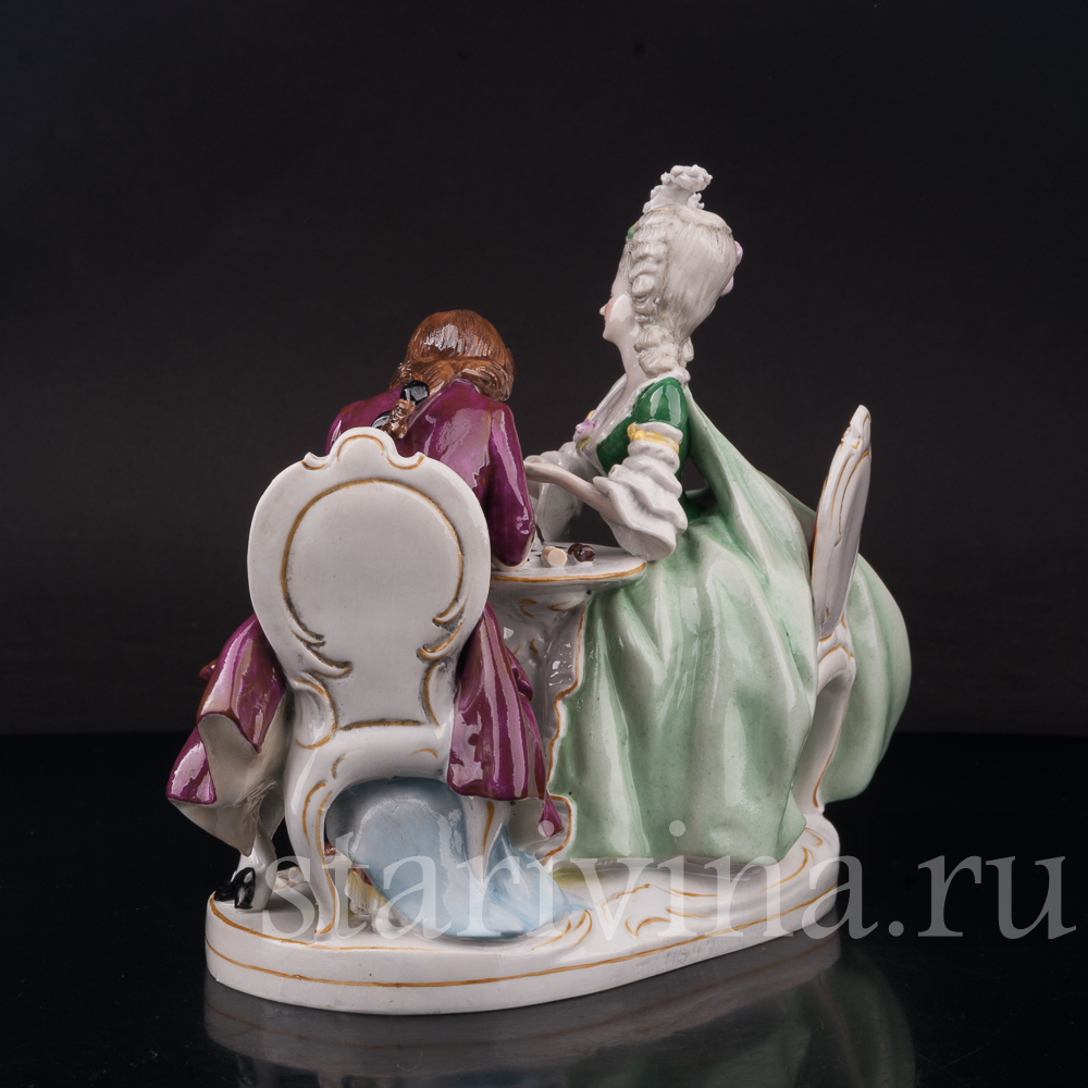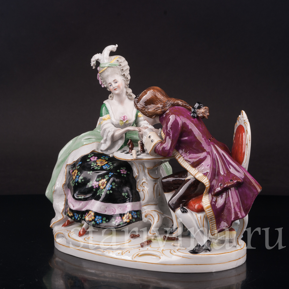 Фарфоровая композиция Прерванная партия, пара за шахматами, Scheibe-Alsbach, Германия, сер. 20 в.
