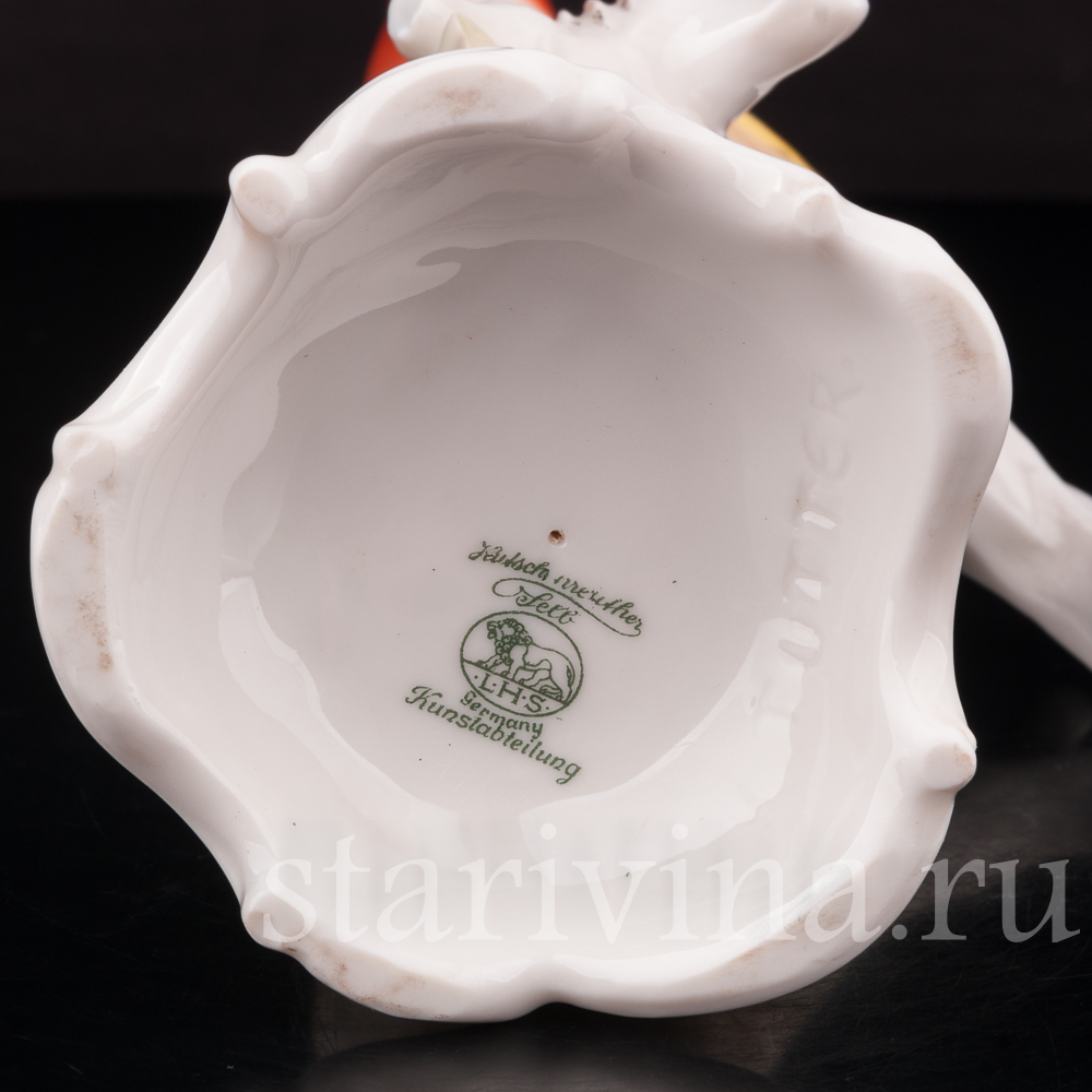 Эта изящная фарфоровая статуэтка щегла на ветке – творение одной из крупнейших и известнейших фарфоровых мануфактур Германии, Hutchenreuter. Фабрика славится своими реалистичными фигурами животных и птиц, и этот щегол – яркое тому подтверждение.