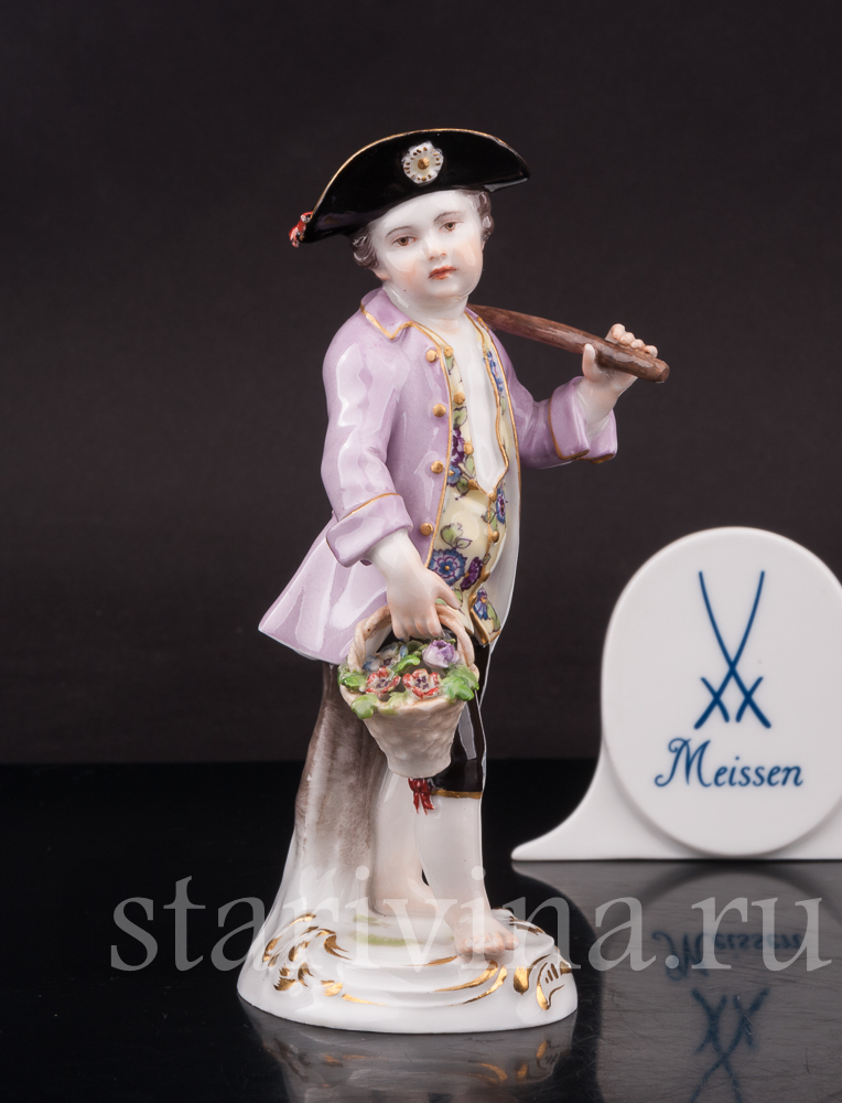 Фигурка мальчика с мотыгой относится к одной из мейсенских серий детей-садовников. Модель была создана в середине 18 века известнейшим скульптором долгое время возглавлявшим мейсенскую фарфоровую мануфактуру Иоганном Иоахимом Кендлером.