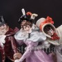 Декоративные элементы статуэтки выполнены тонко, и не нарушают баланс, не отвлекают на себя внимание – ленты, банты, цветочки – все это создает нюансы, завершающие романтичный образ. Фигура расписана в нежные, глубокие, красивые цвета и в сочетании создают праздничное настроение.