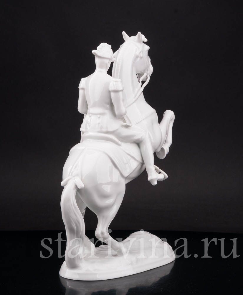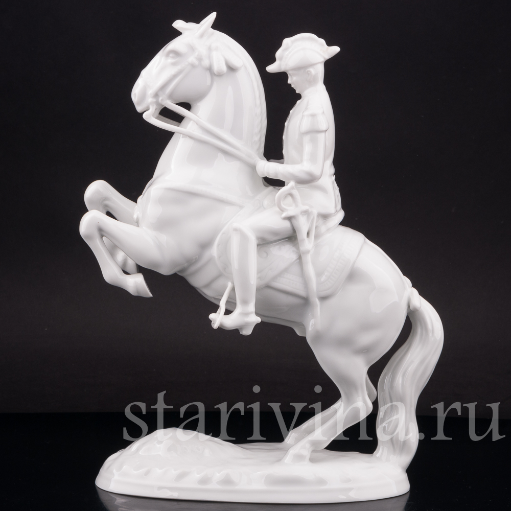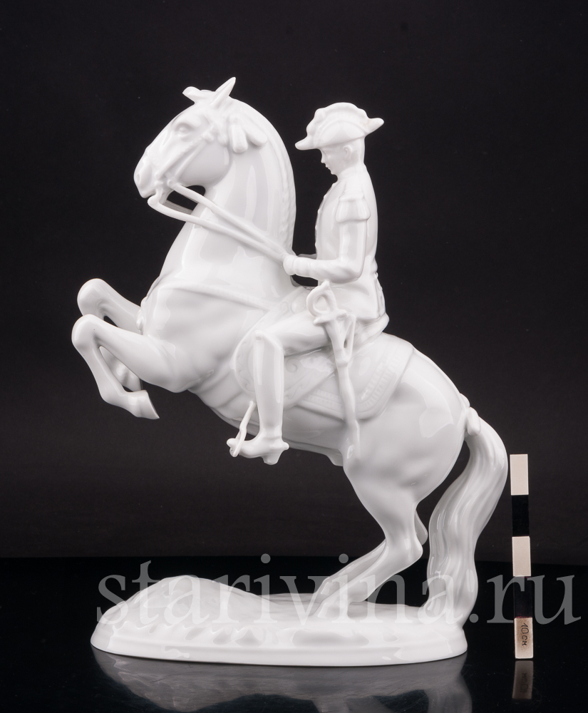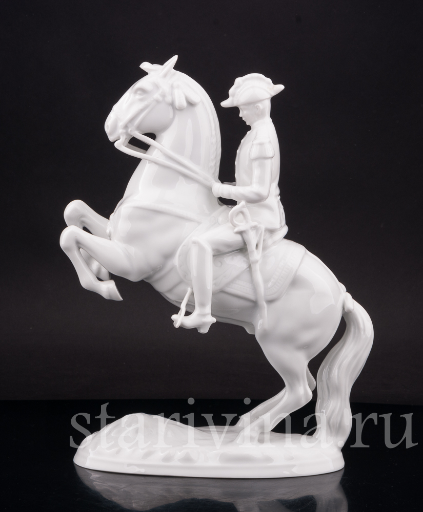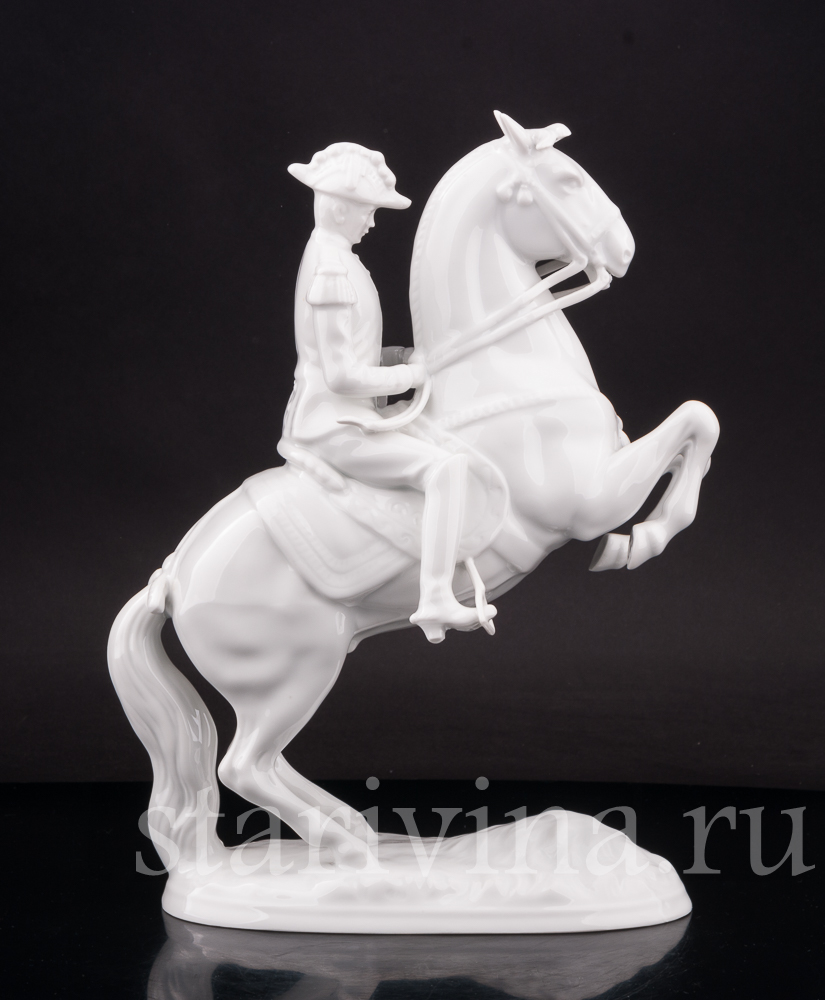 Данная фигурка повторяет одну и моделей Альбина Добриха, выпущенную на австрийкой фарфоровой мануфактуре Аугартен в первой половине 20 века и посвященную Школе испанской верховой езды, находящейся в Вене. Школа ведет свою историю с 1565 года, а её название происходит от испанской породы лошадей — единственной используемой в школе.