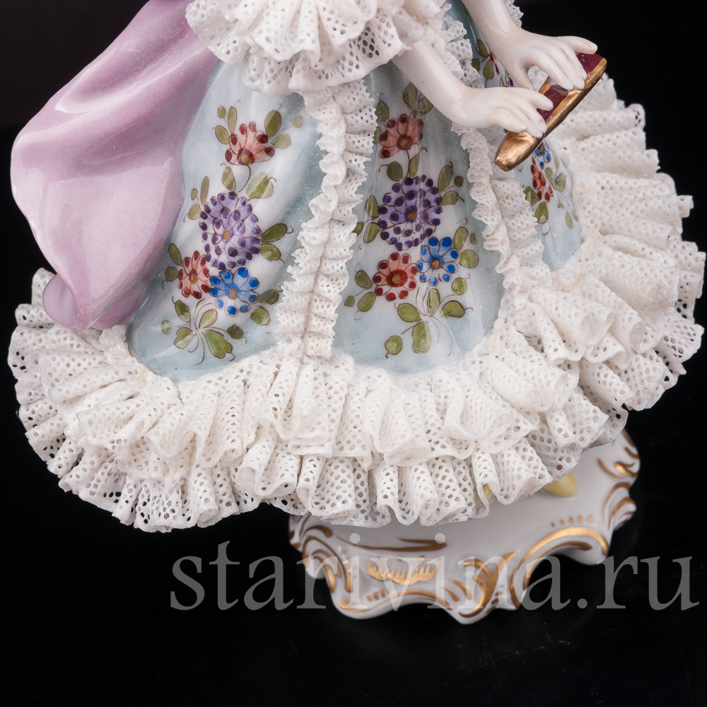 Фарфоровая статуэтка Девушка с веером, кружевная, Volkstedt, Германия, вт. пол. 20 в.