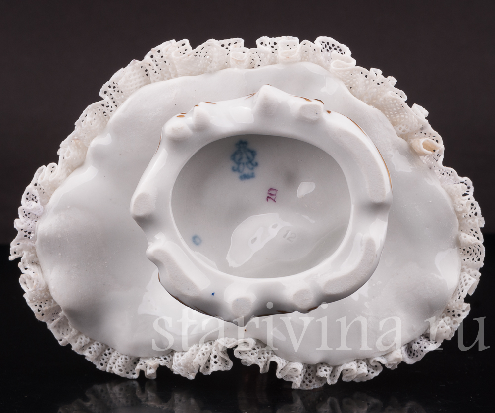 Эта очаровательная статуэтка девушки с веером родом из Фолькштедта – крупнейшего фарфорового центра Германии, славящегося своими изысканными кружевными изделиями среди коллекционеров.