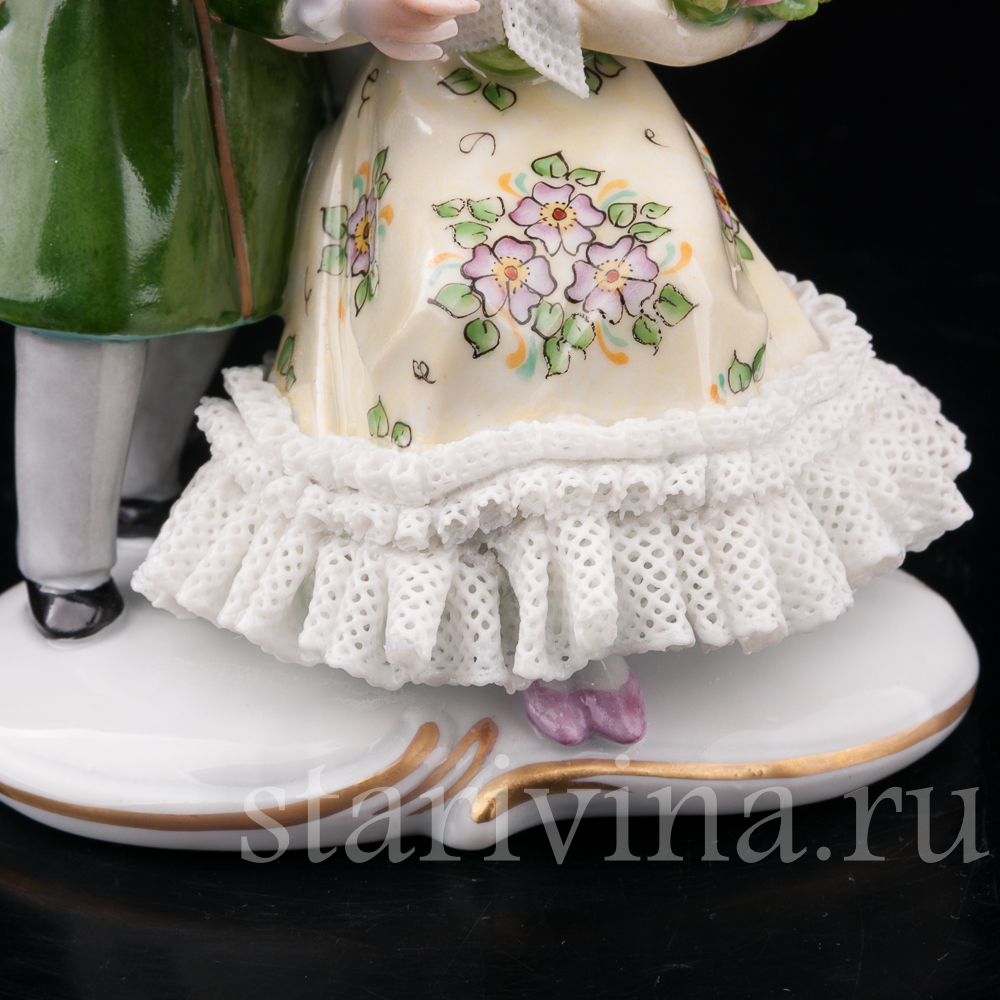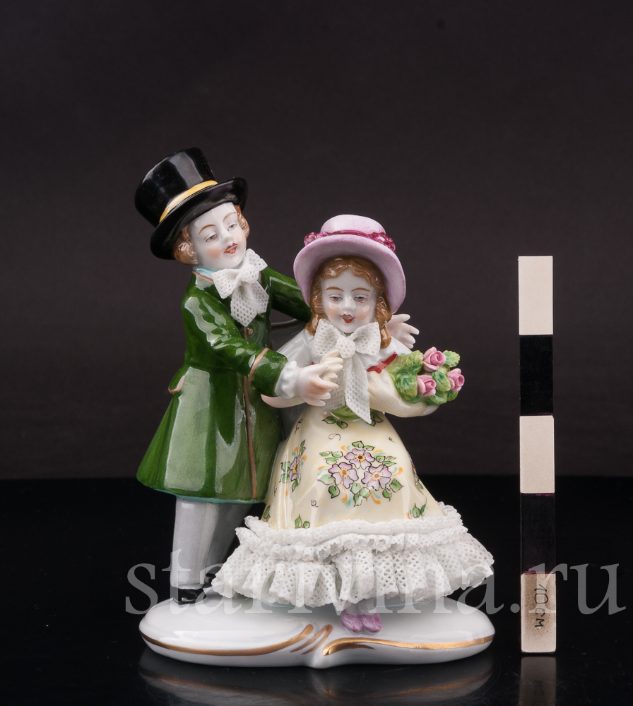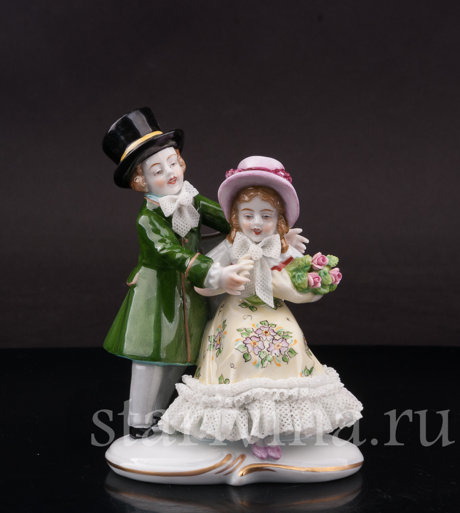 Фигурка из фарфора Пара детей, кружевная, Sitzendorf, Германия, вт. пол. 20 в.