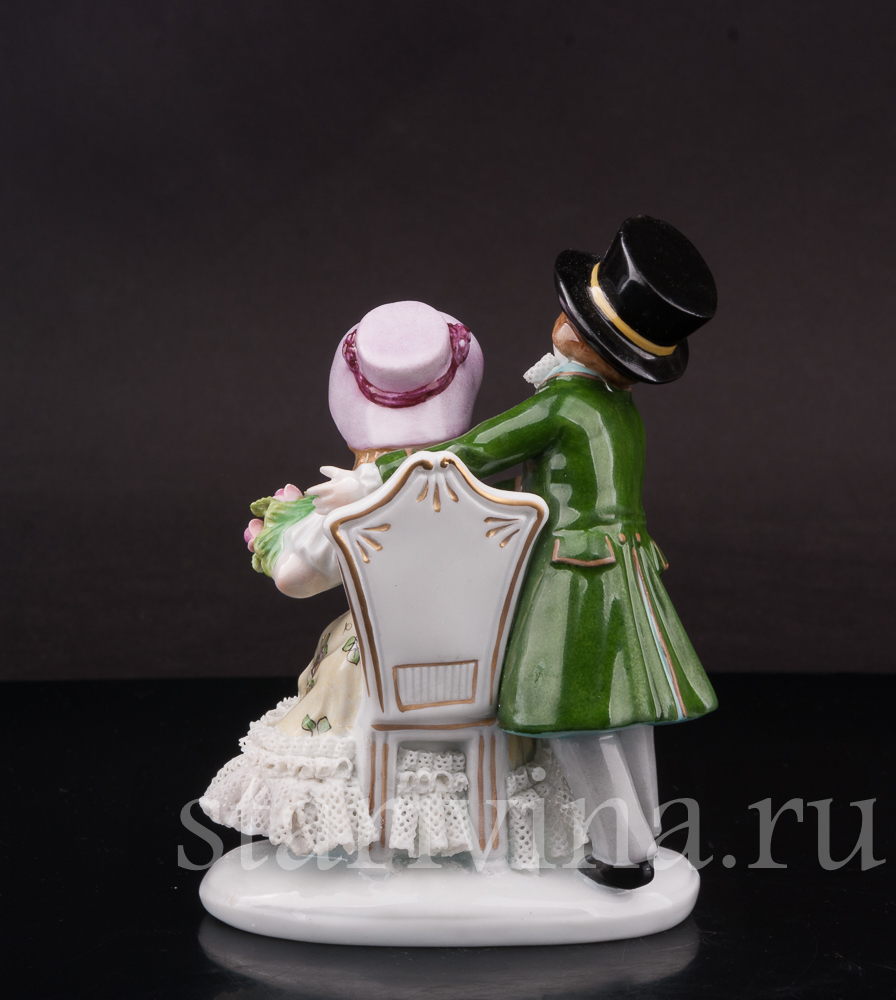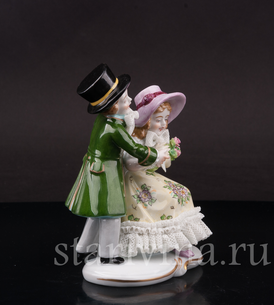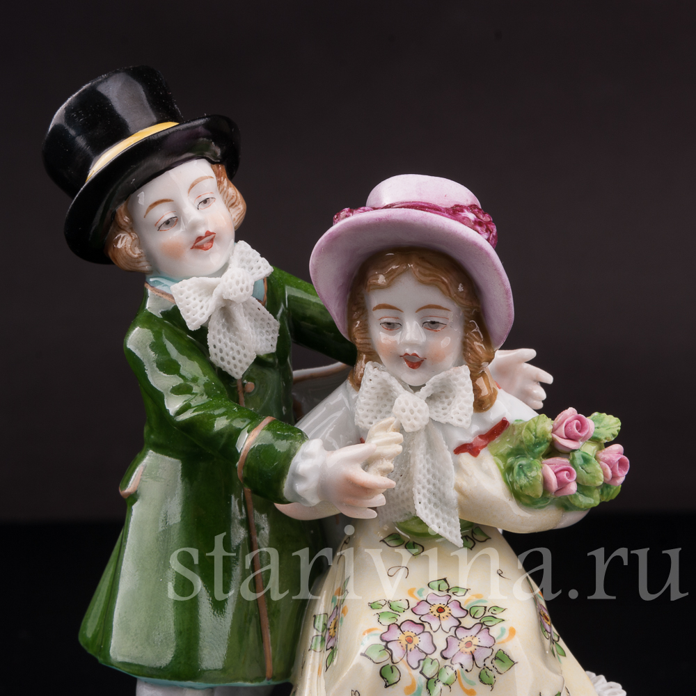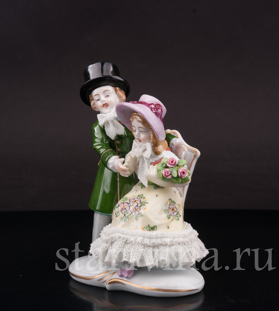 Фигурка из фарфора Пара детей, кружевная, Sitzendorf, Германия, вт. пол. 20 в.