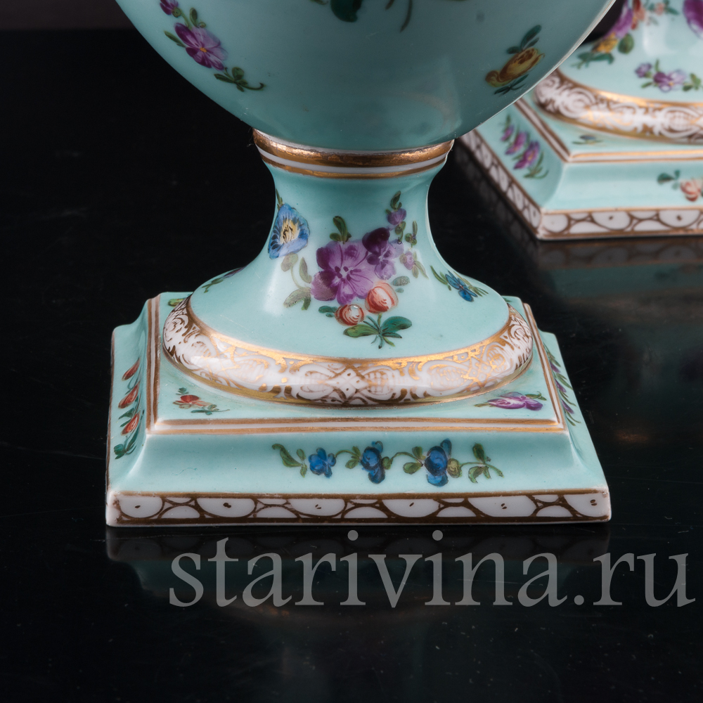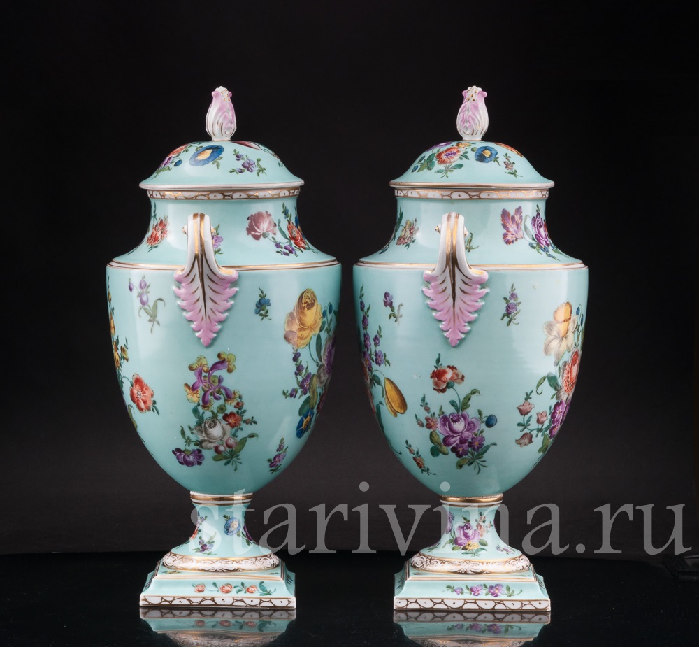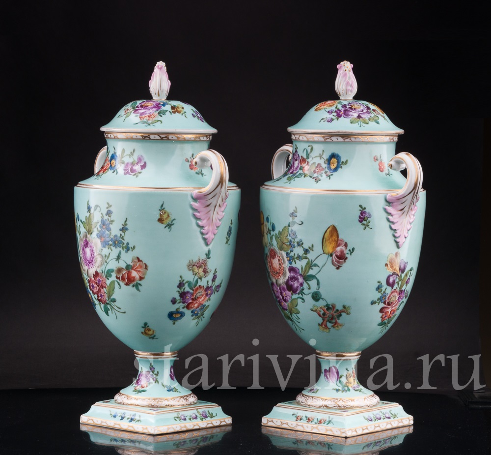 Парные фарфоровые вазы Розы и тюльпаны, Helena Wolfsohn, Германия, 1875-83 гг.