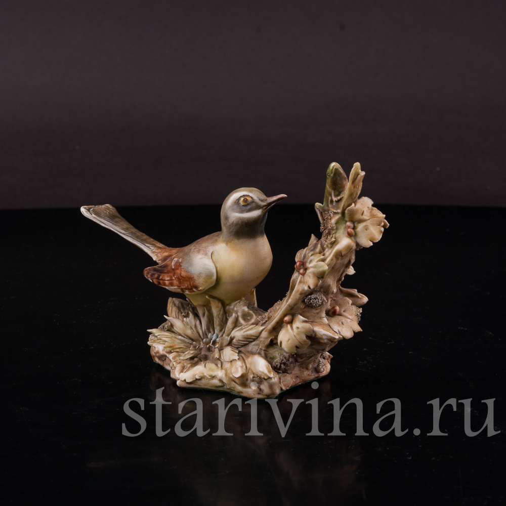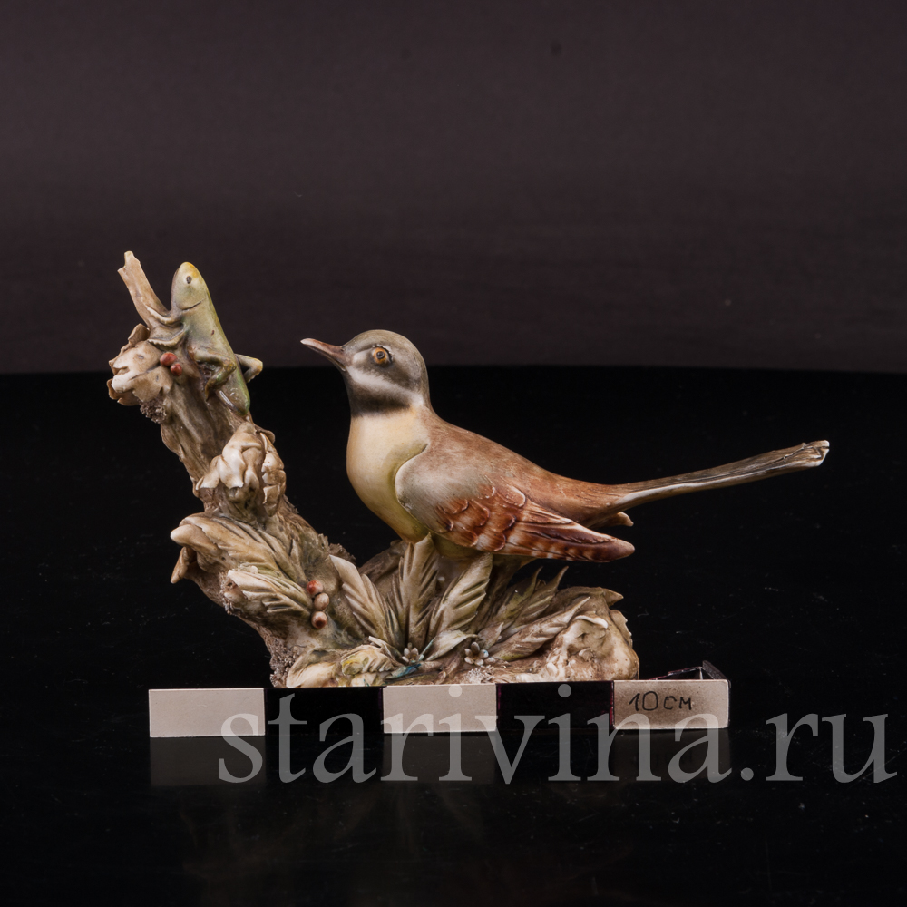 Чудесная фарфоровая статуэтка горной трясогузки с кузнечиком создана по модели Антонио Борсато (1911-1982), одного из самых известных итальянских скульпторов.