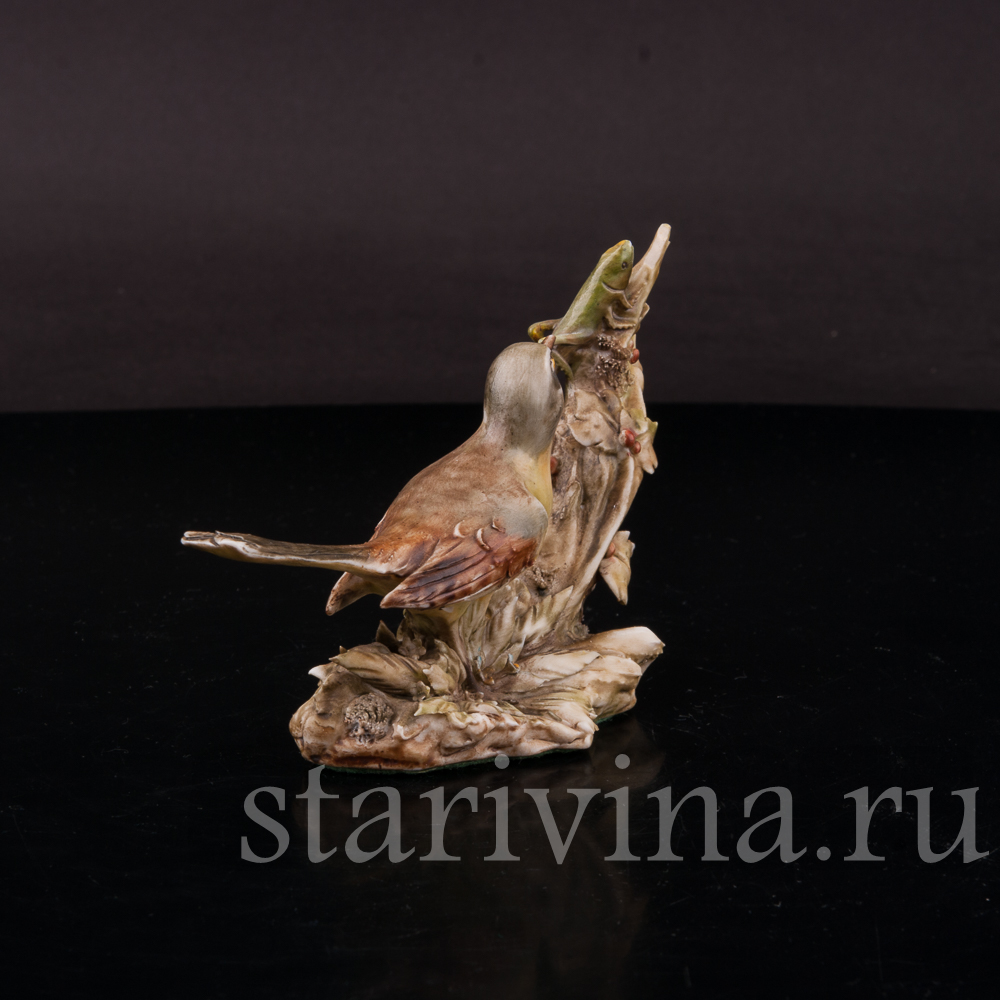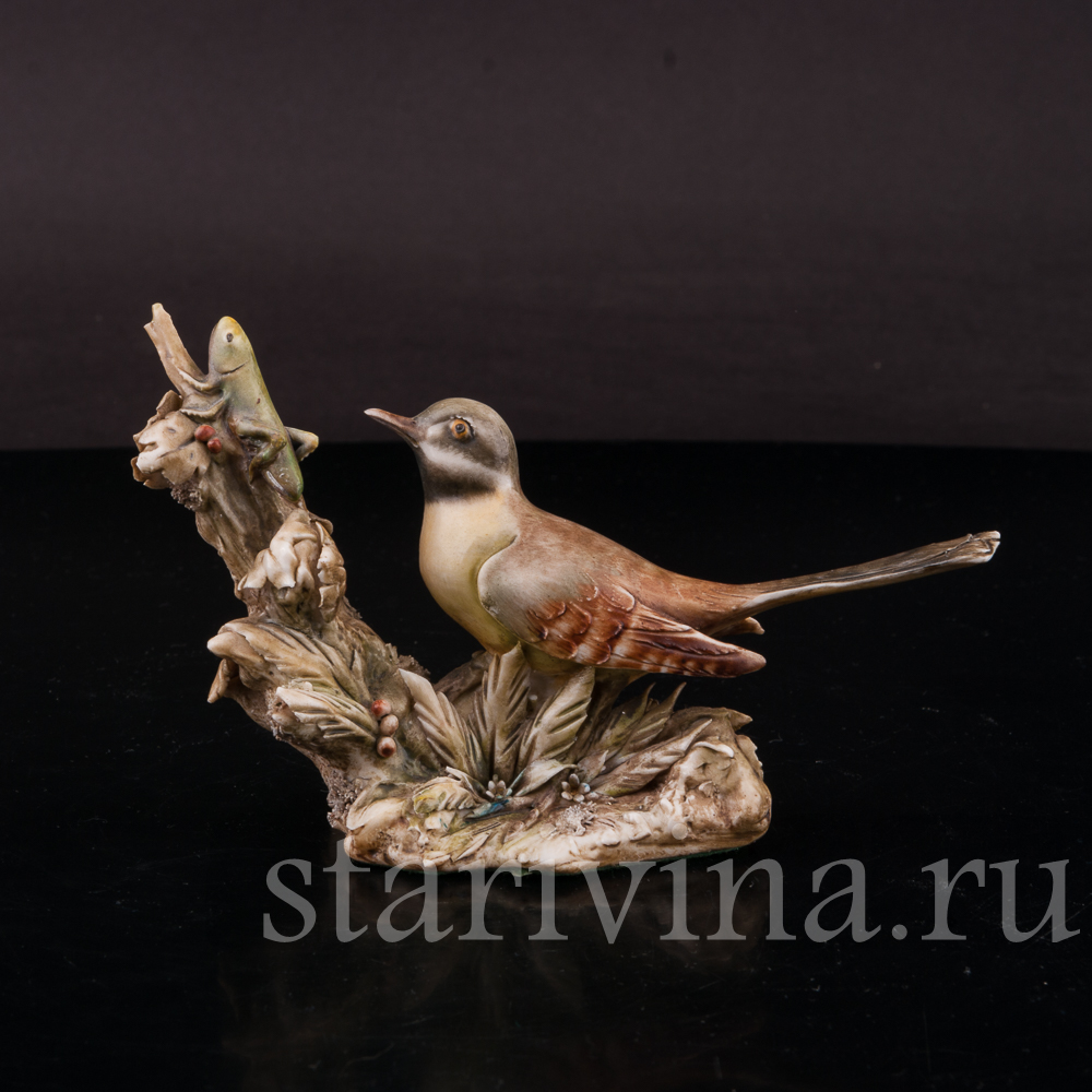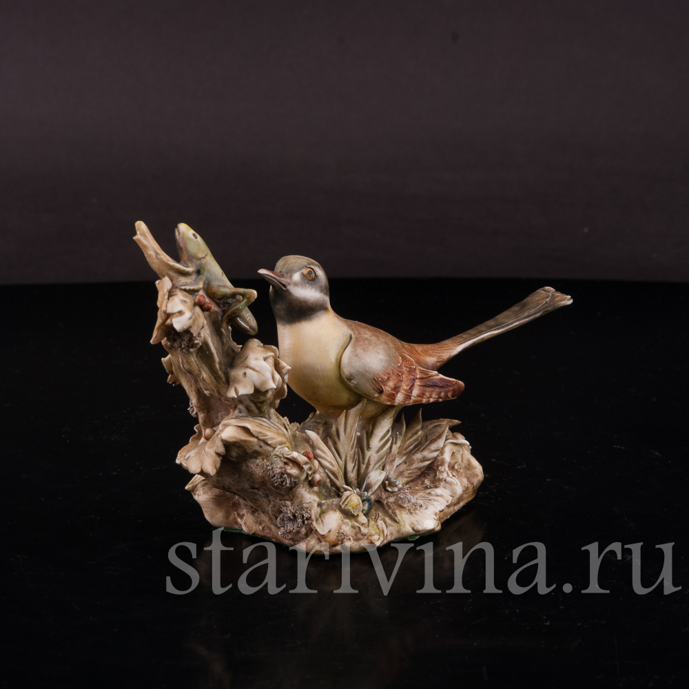Фигурка птицы из фарфора Горная трясогузка и кузнечик Antonio Borsato, Италия, сер. 20 в.