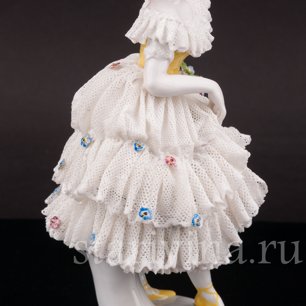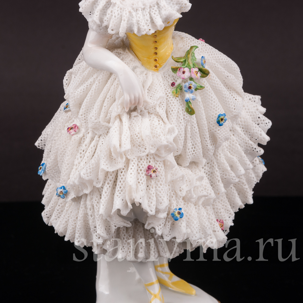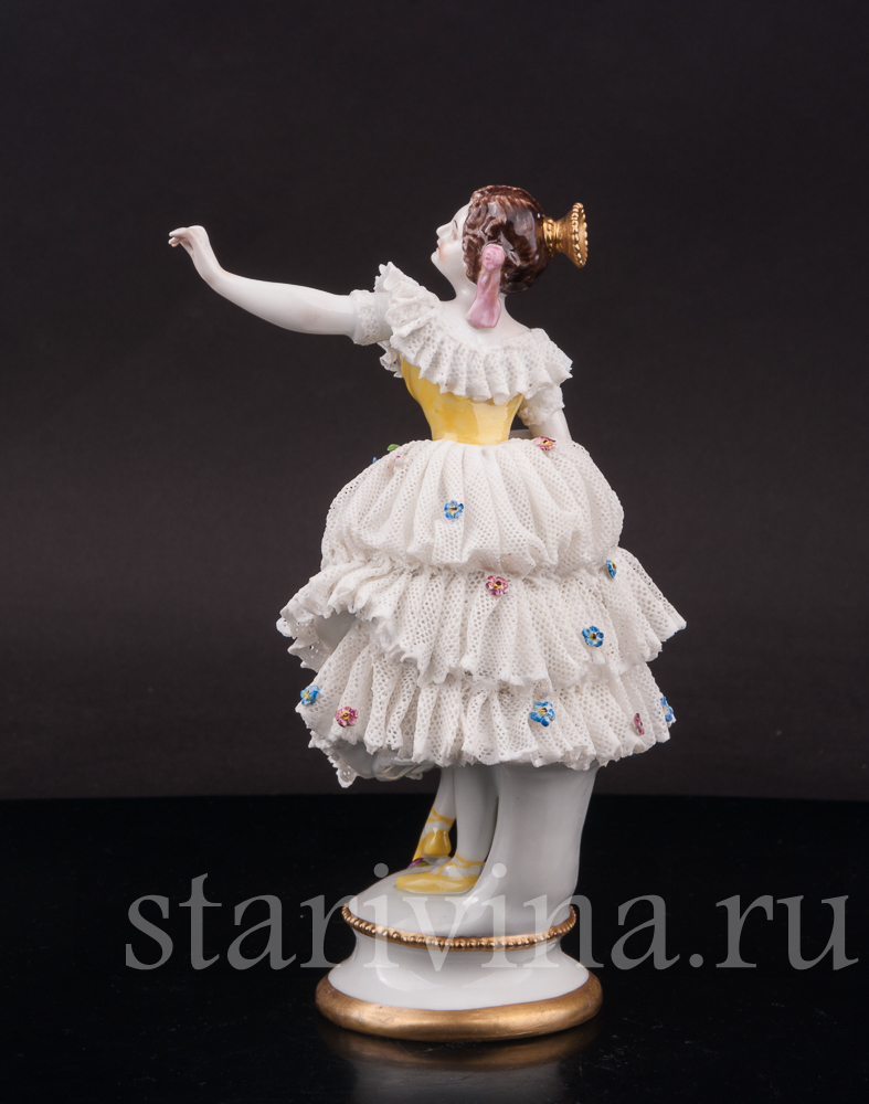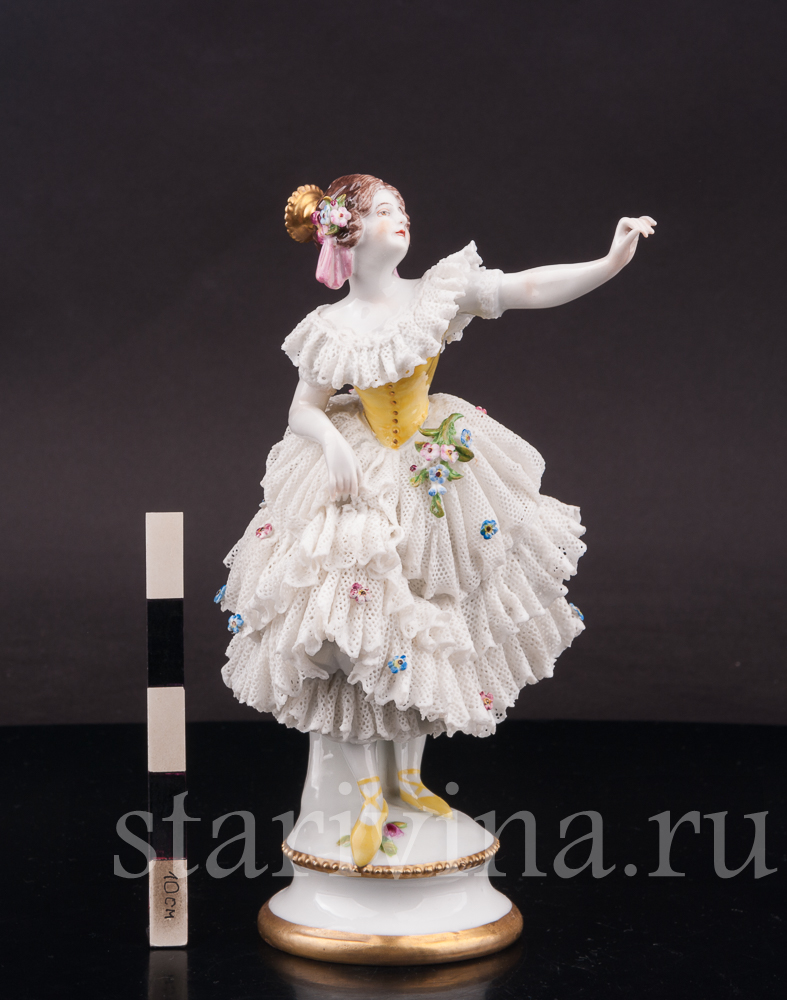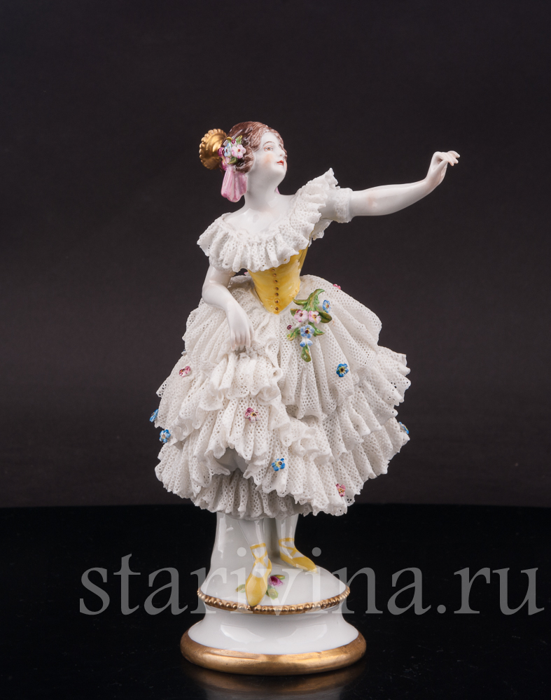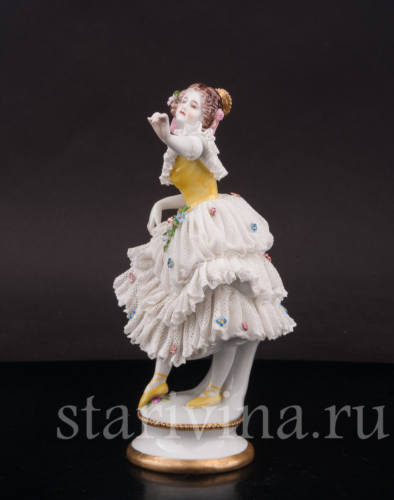 Фигурка девушки из фарфора Балерина в танце, кружевная, Volkstedt, Германия, нач. 20 в.