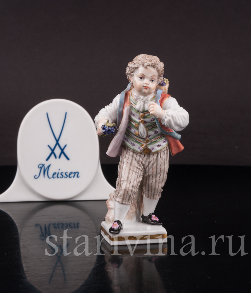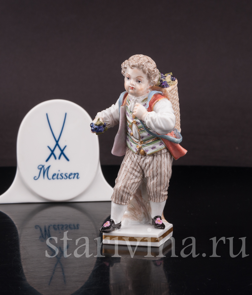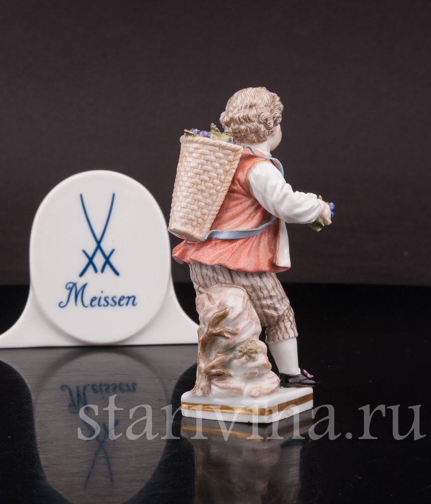 Фарфоровая статуэтка Мальчик с корзиной винограда, Meissen, Германия, сер. 19 - нач. 20 вв.