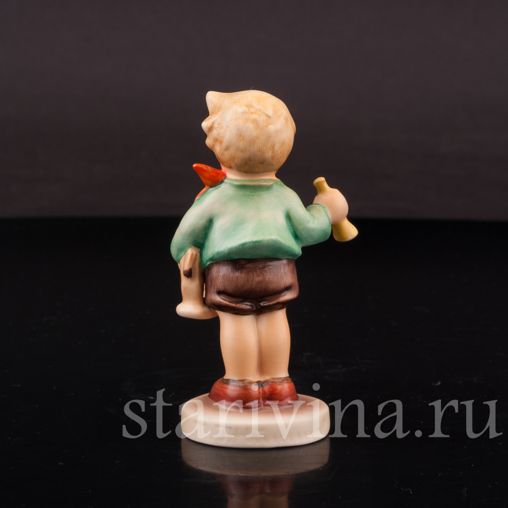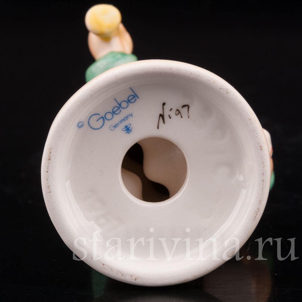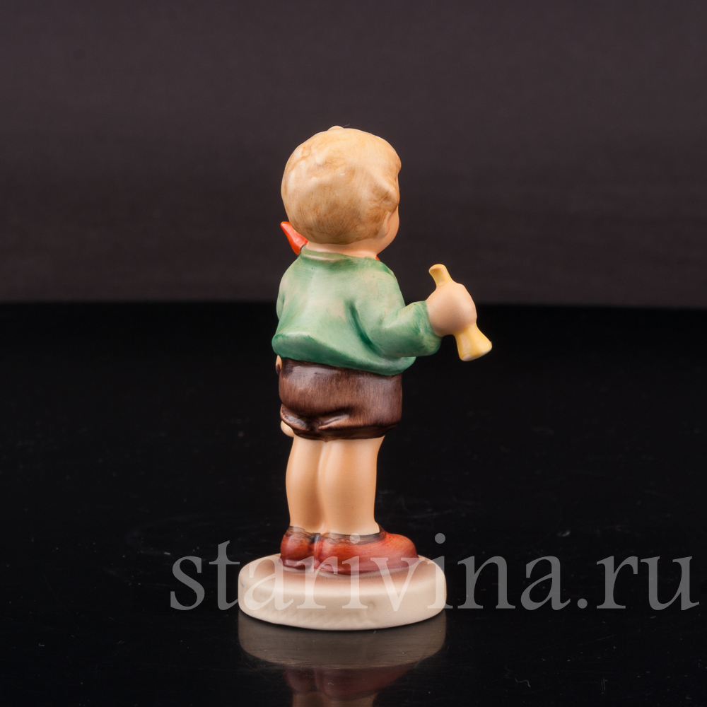 Небольшая статуэтка мальчика с игрушечной лошадкой в руках создана на фабрике Goebel. Фигура относится к большой серии, созданной по эскизам монахини Марии Иннокентии Хуммель, выпускавшейся с 1935 года.