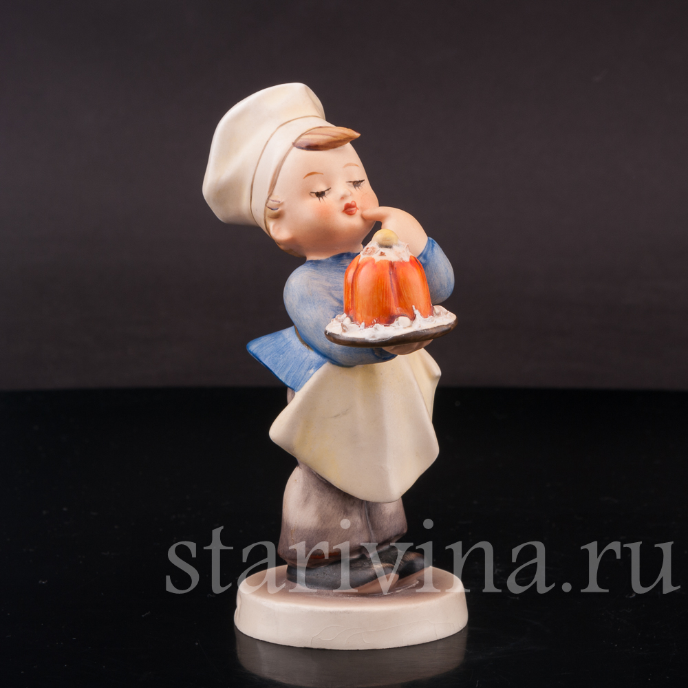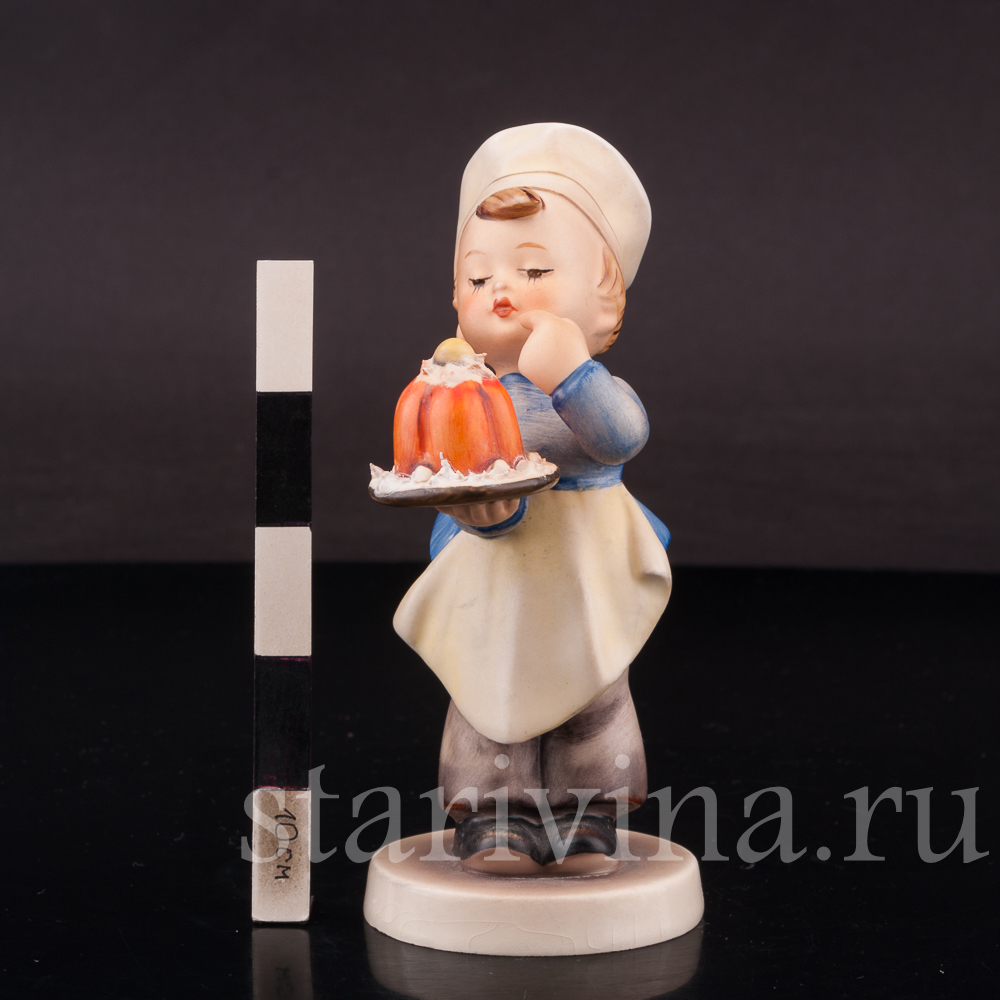 Фигура маленького повара с пирогом в руках - статуэтка, произведенная на фабрике Goebel, и относящаяся к одной из самых известных серий фабрики, созданной по эскизам монахини Марии Хуммель. Фигурки детей Хуммель выпускались с 1935 года под строгим надзором женского монастыря в Зиссене, где жила и работала сестра М.И. Хуммель.