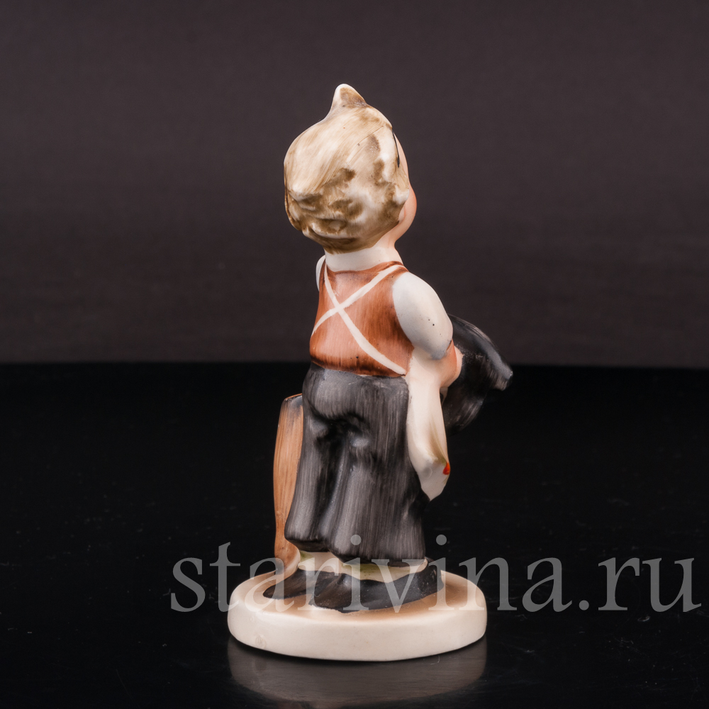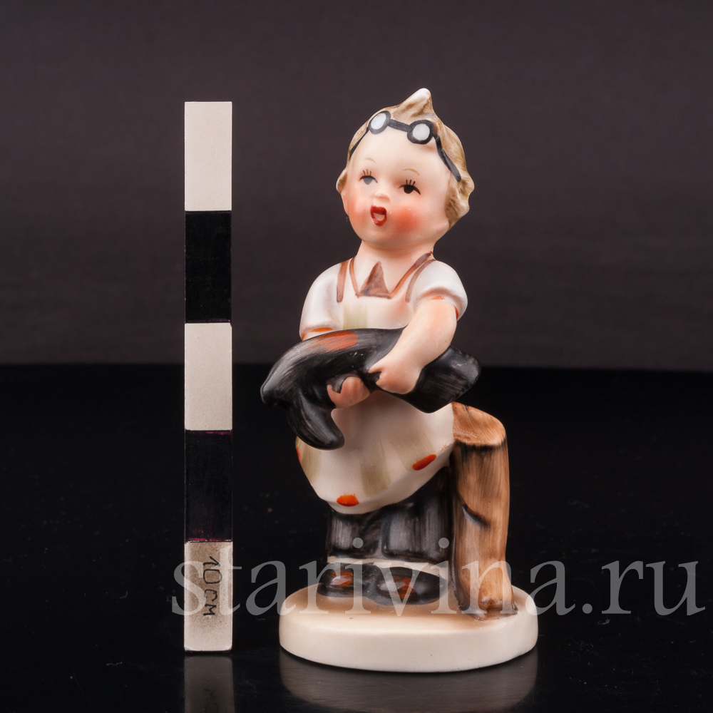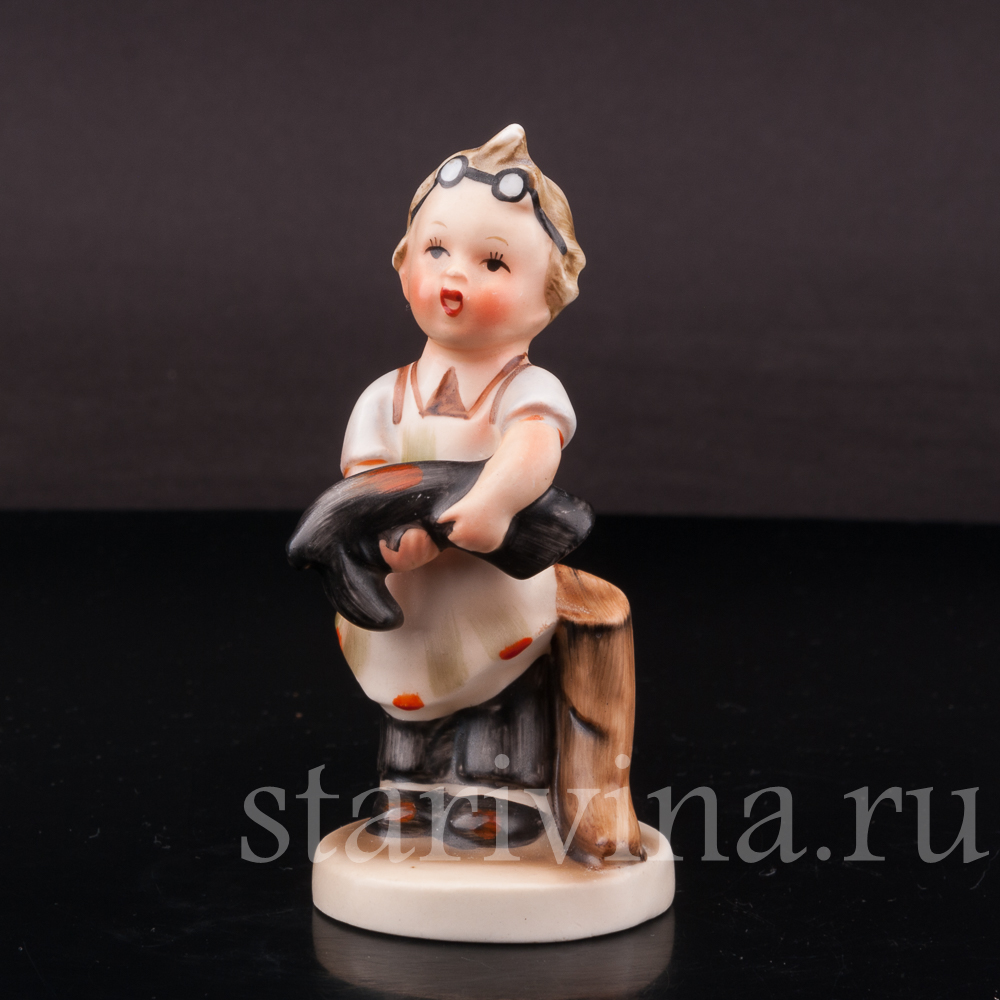 Небольшая статуэтка мальчика в одежде сапожника создана на фабрике Goebel. Фигурка относится к известной серии статуэток, изображающих детей за разными играми и повседневными занятиями, созданной по эскизам монахини Марии Иннокентии Хуммель, выпускавшейся с 1935 года.