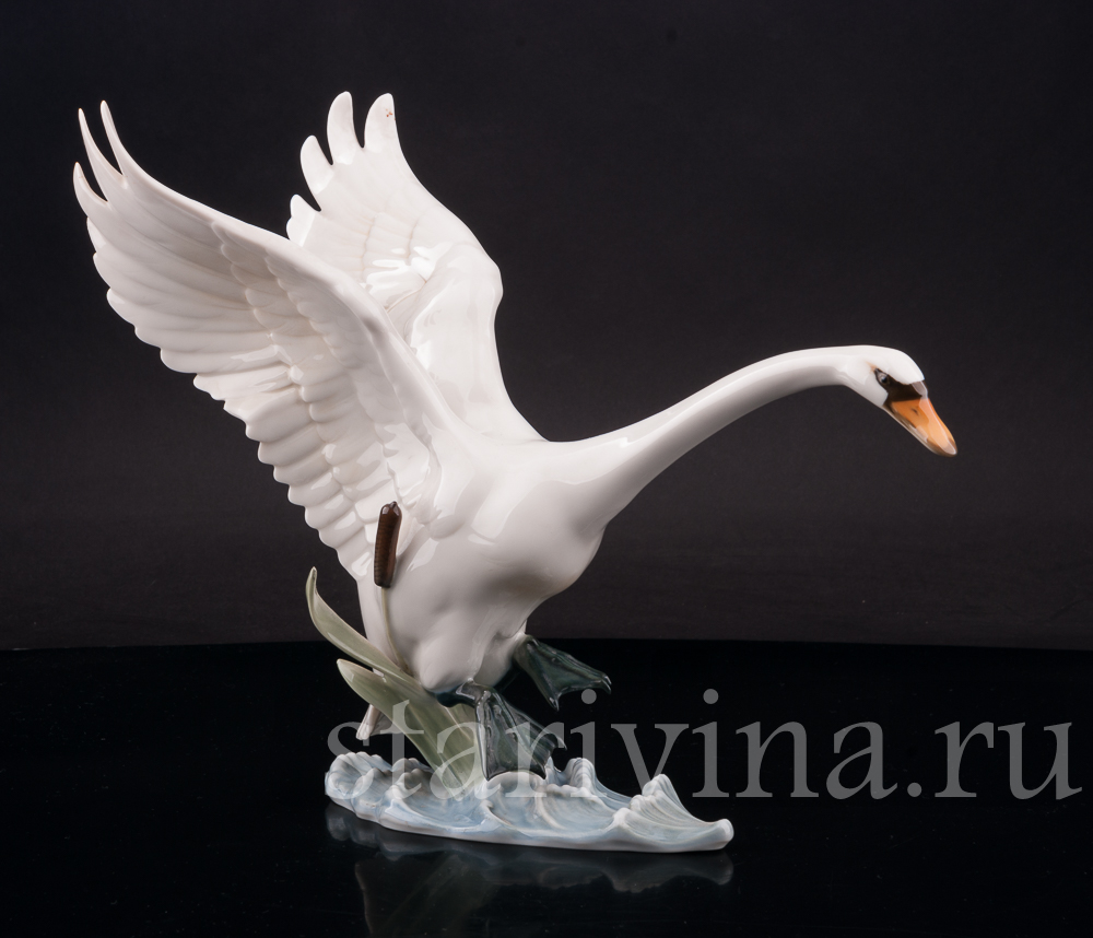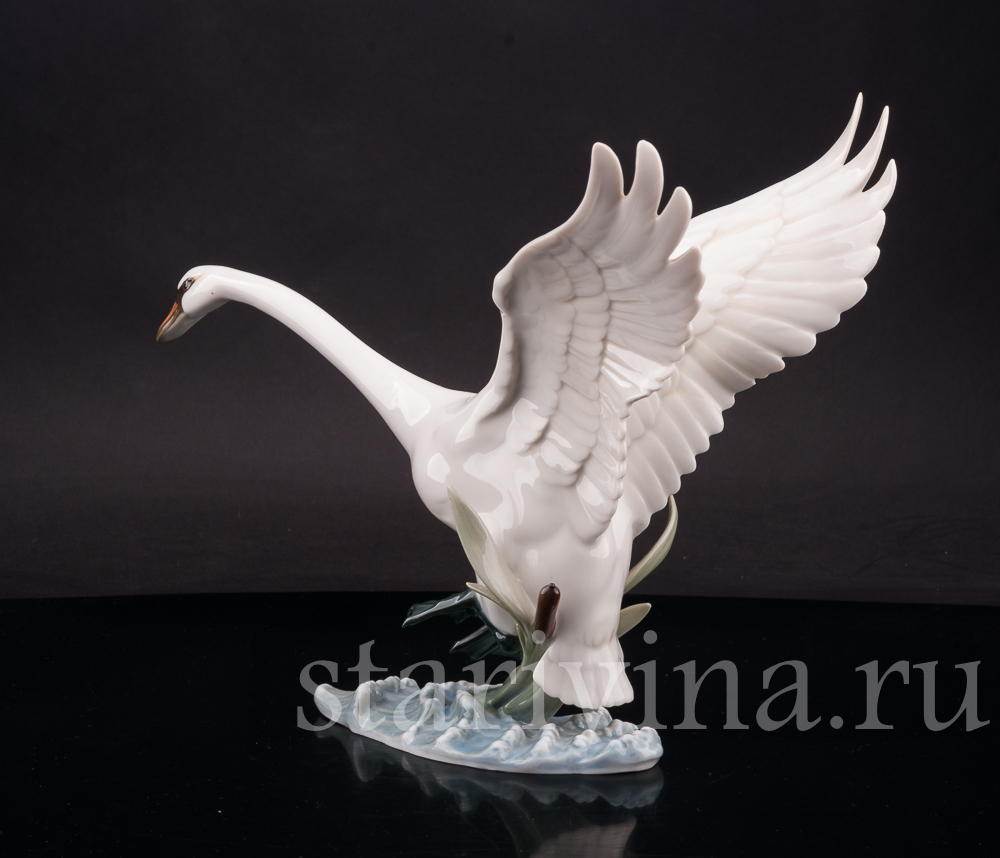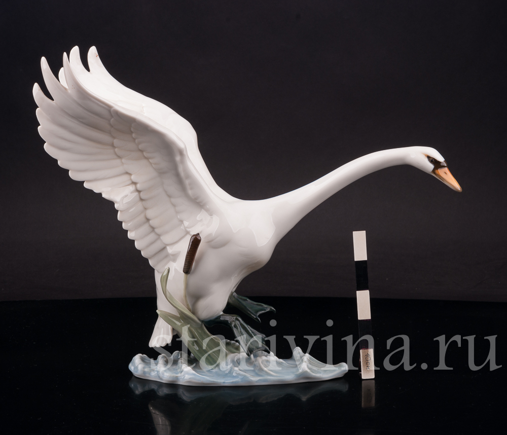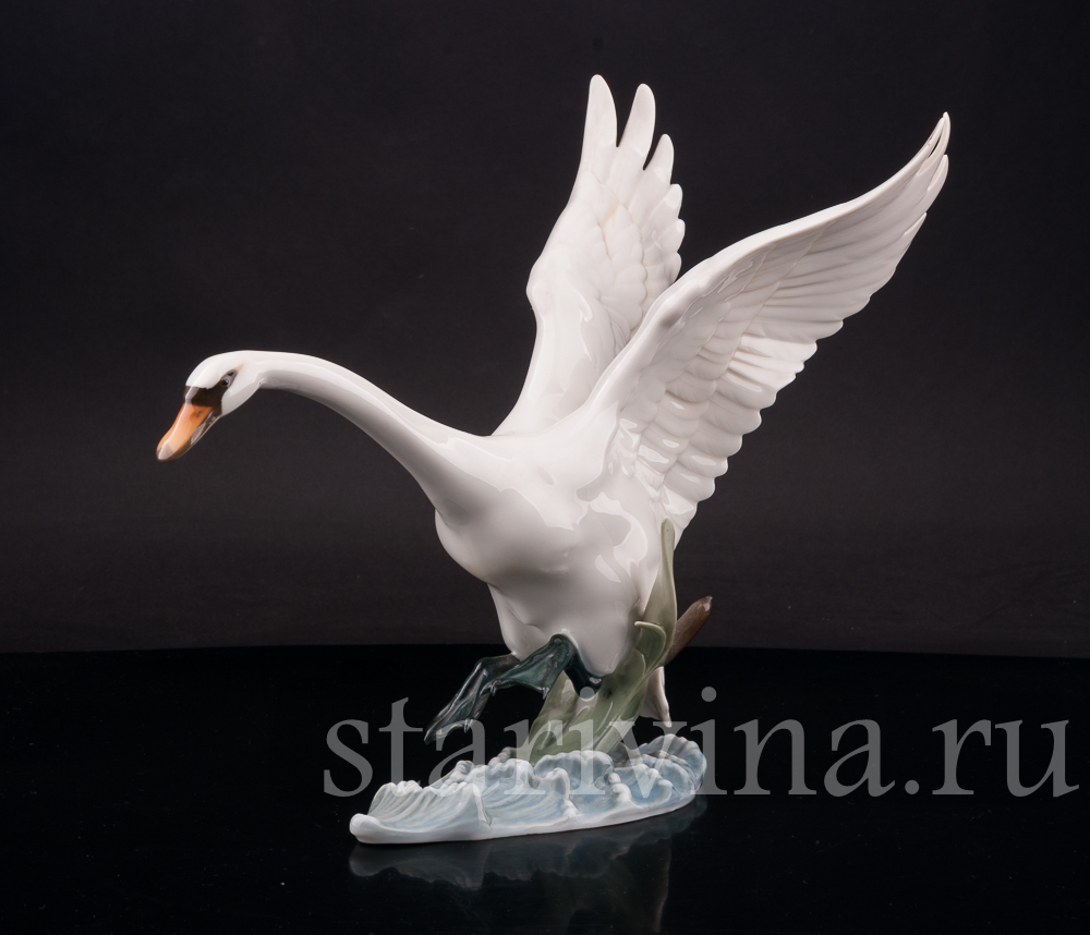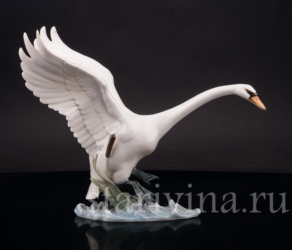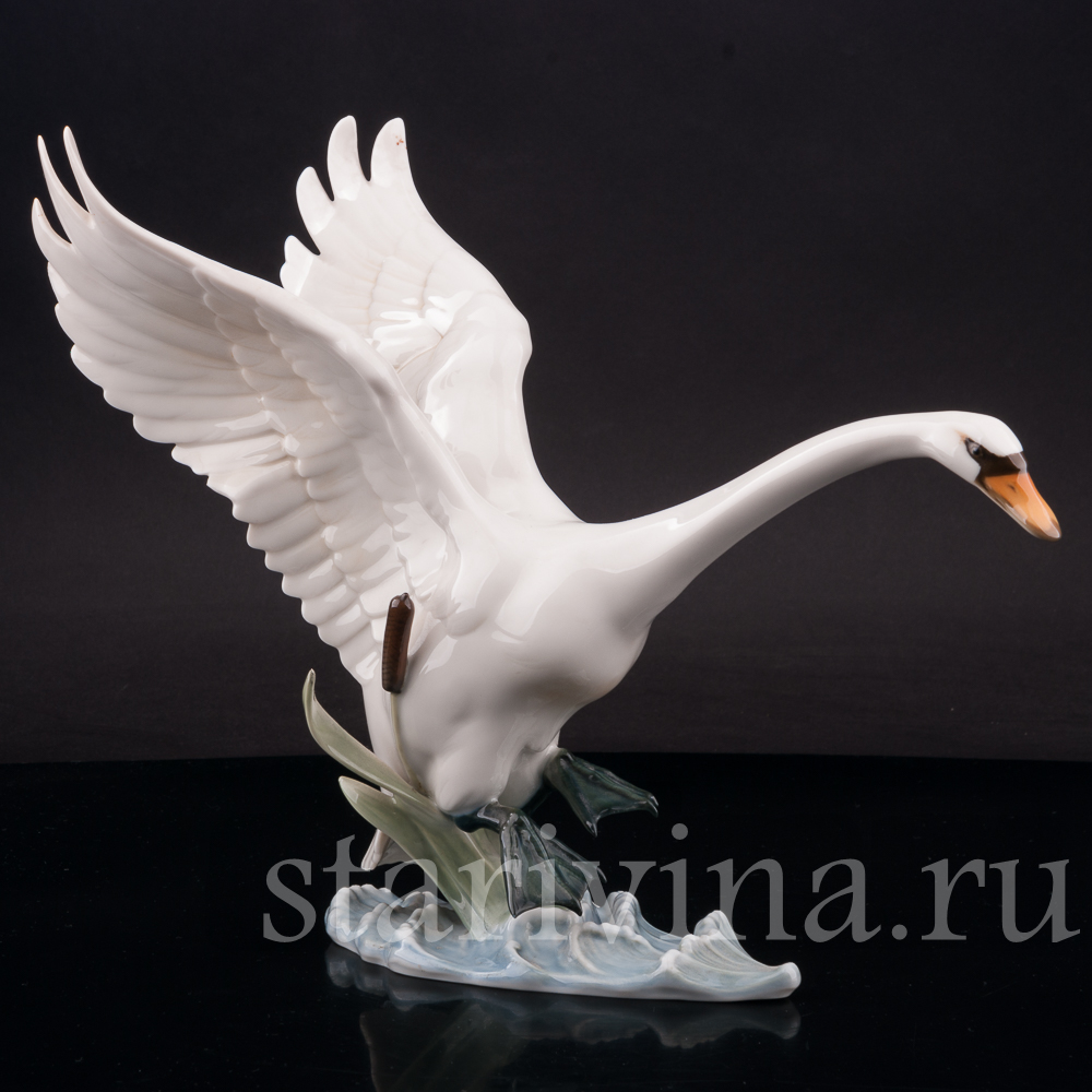 Фарфоровая статуэтка птицы Взлетающий лебедь, Hutschenreuther, Германия, 1970 гг.