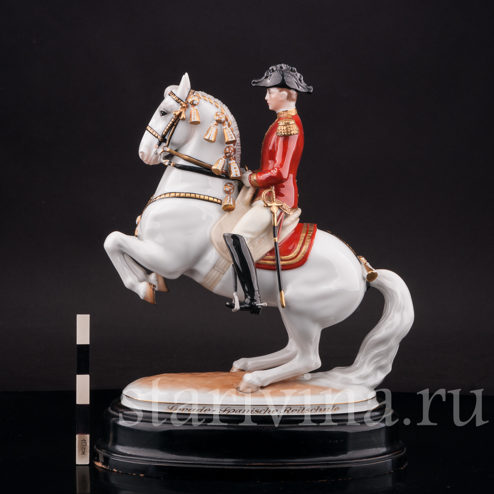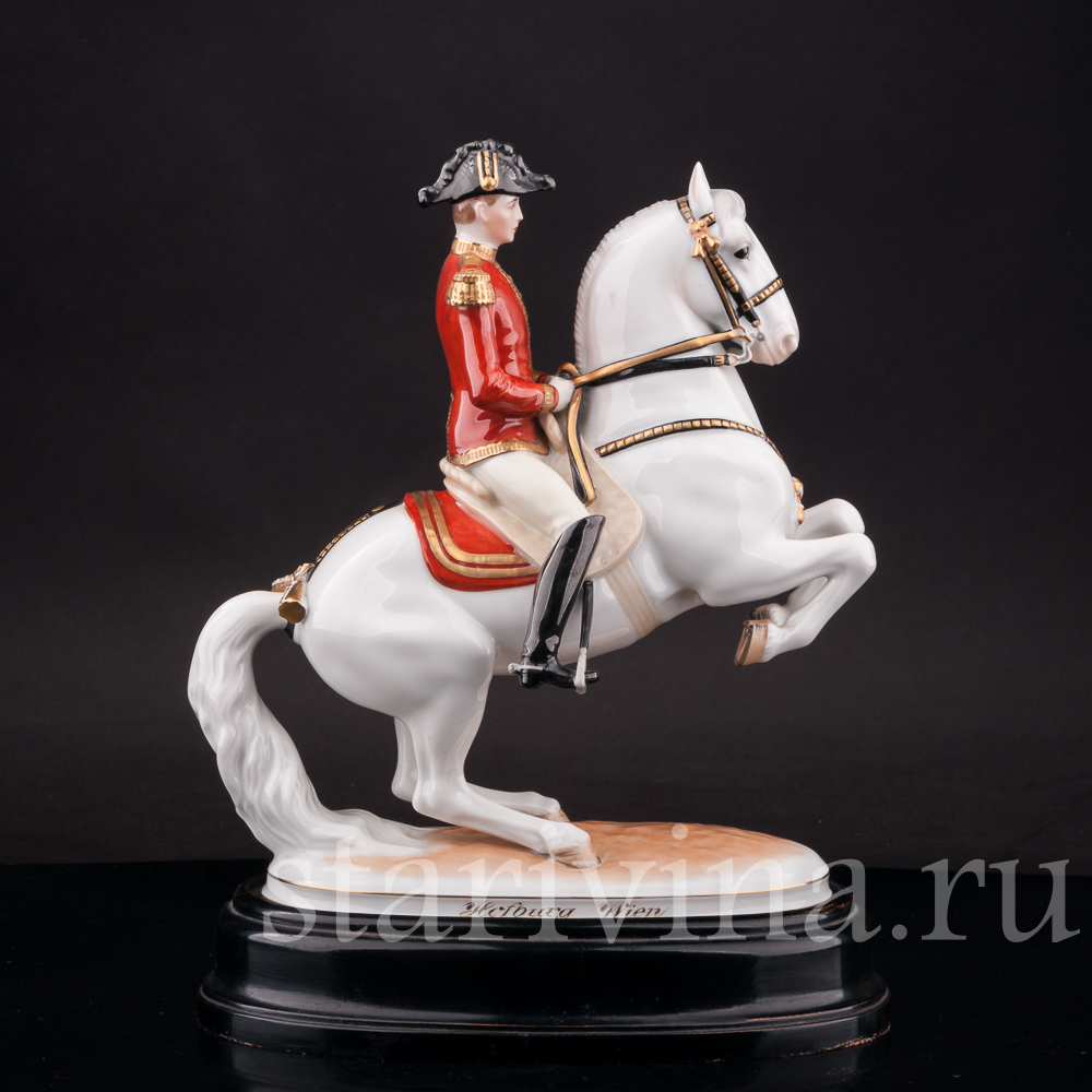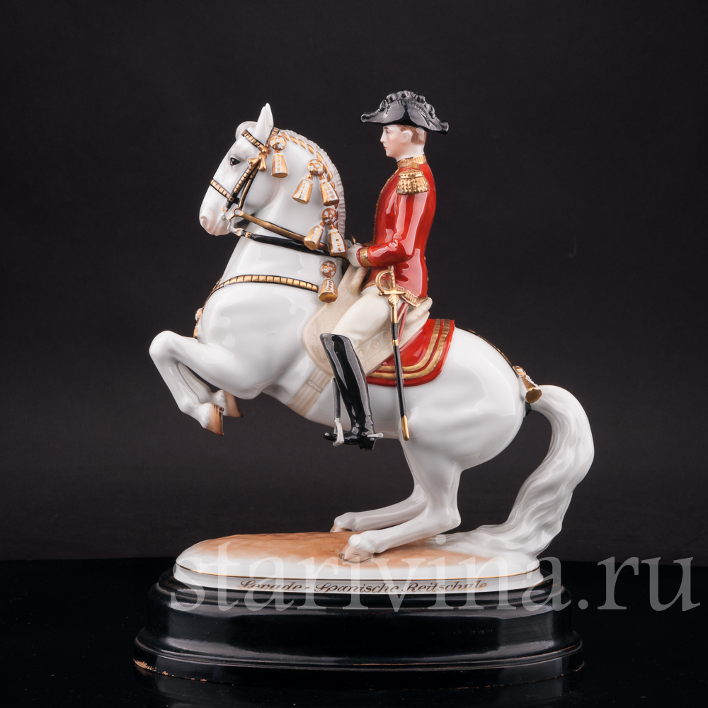 Данная композиция относится к серии статуэток, посвященной Школе испанской верховой езды и созданной австрийским скульптором Альбином Добрихом в первой половине 20 века. Название школы, находящейся в Вене и ведущей свою историю с 1565 года, происходит от испанских лошадей — Липпицианской породы, единственной используемой в школе.