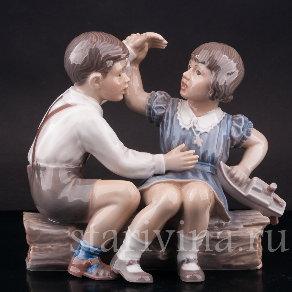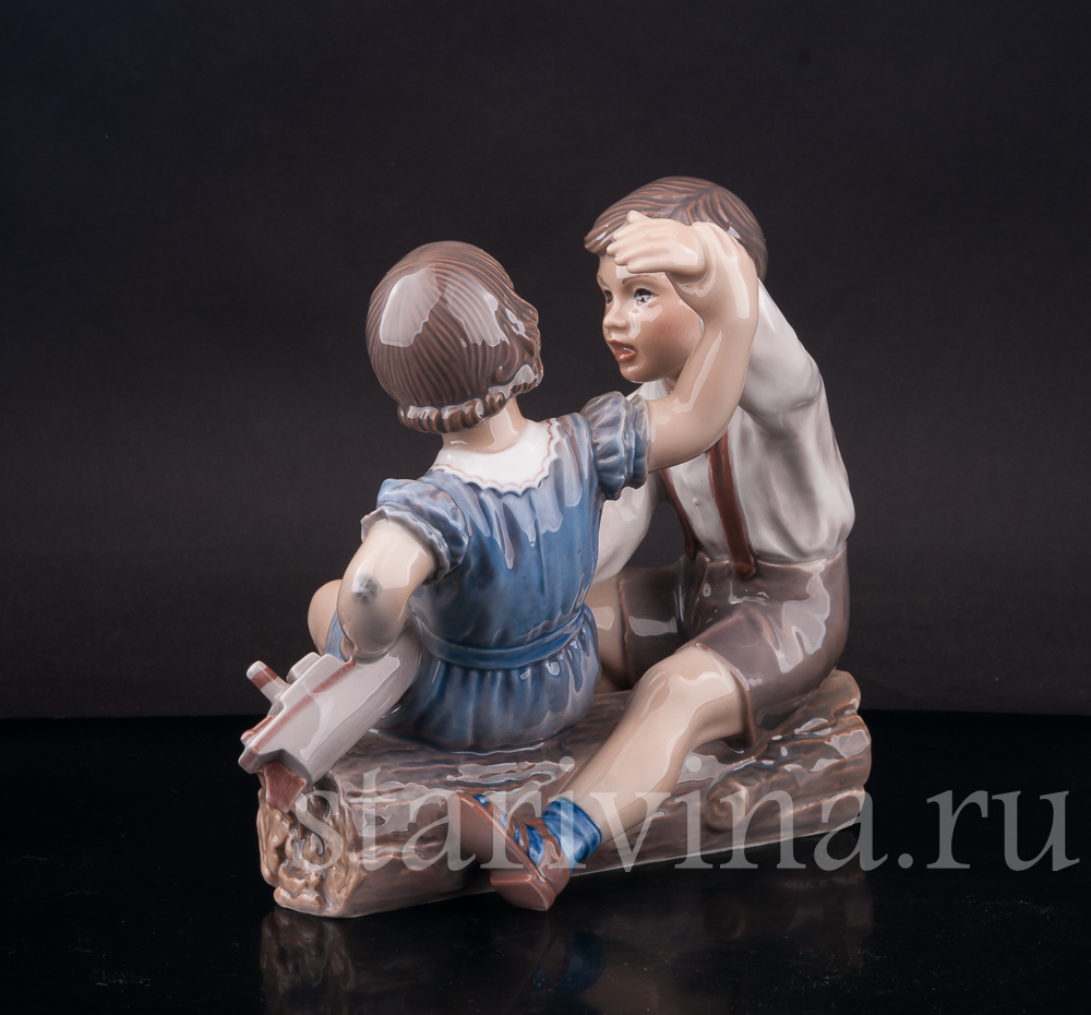 Фигурка из фарфора Девочка и мальчик с корабликом, Dahl Jensen, Дания, 1920-80 гг.