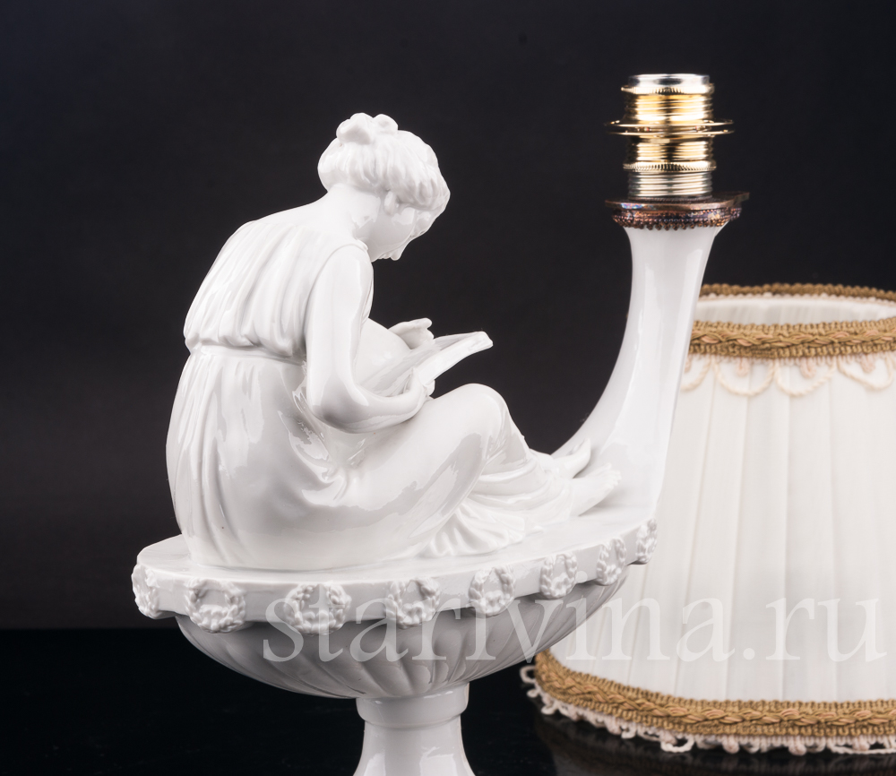 Фарфоровая лампа Девушка, читающая книгу, Volkstedt, Германия, нач. 20 в.