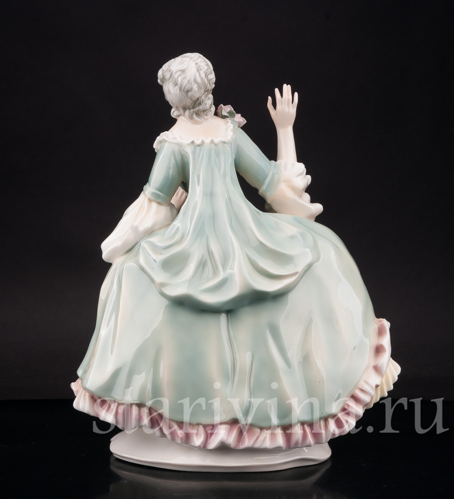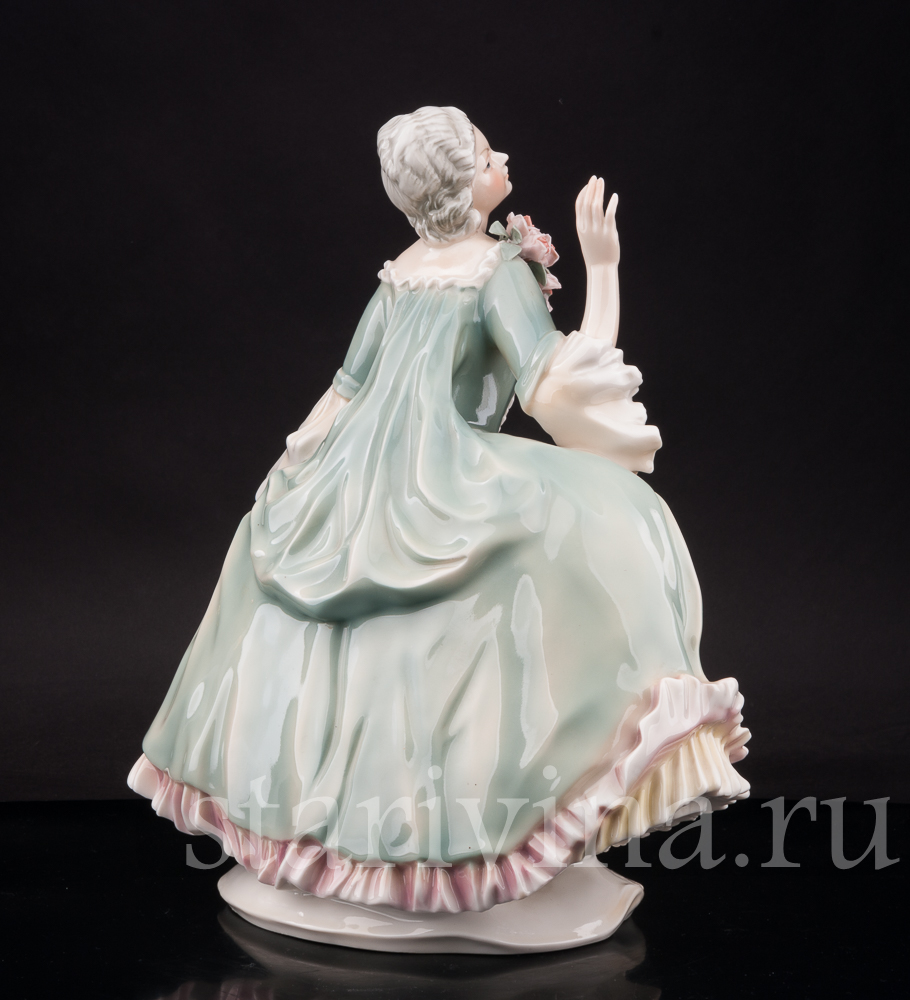 Роскошная фигура дамы в зеленом платье выполнена на одной из самых ярких и интересных мануфактур Германии - фабрике Karl Ens, открытой в 1810 году в Тюрингии.