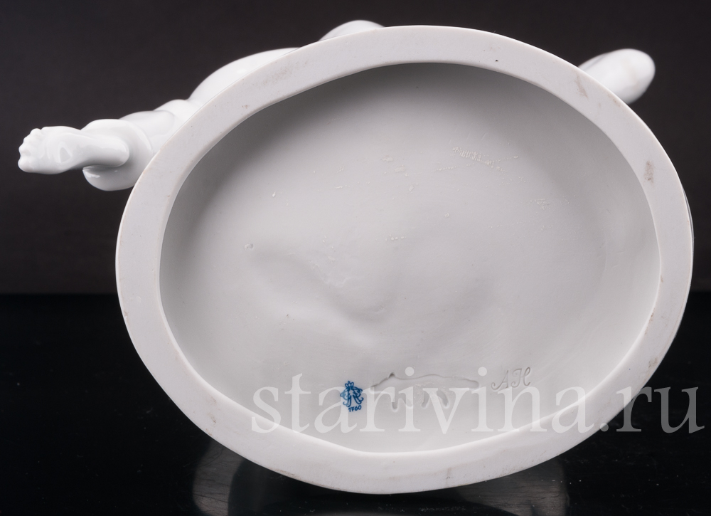 Статуэтка выполнена без росписи на фабрике в городе Фолькштедт во второй половине 20 века по более ранней модели фабрики Schwarzburger, Работы этой мануфактуры выделяются своей тщательностью и профессиональным исполнением и неизменно привлекают коллекционеров и ценителей фарфора.