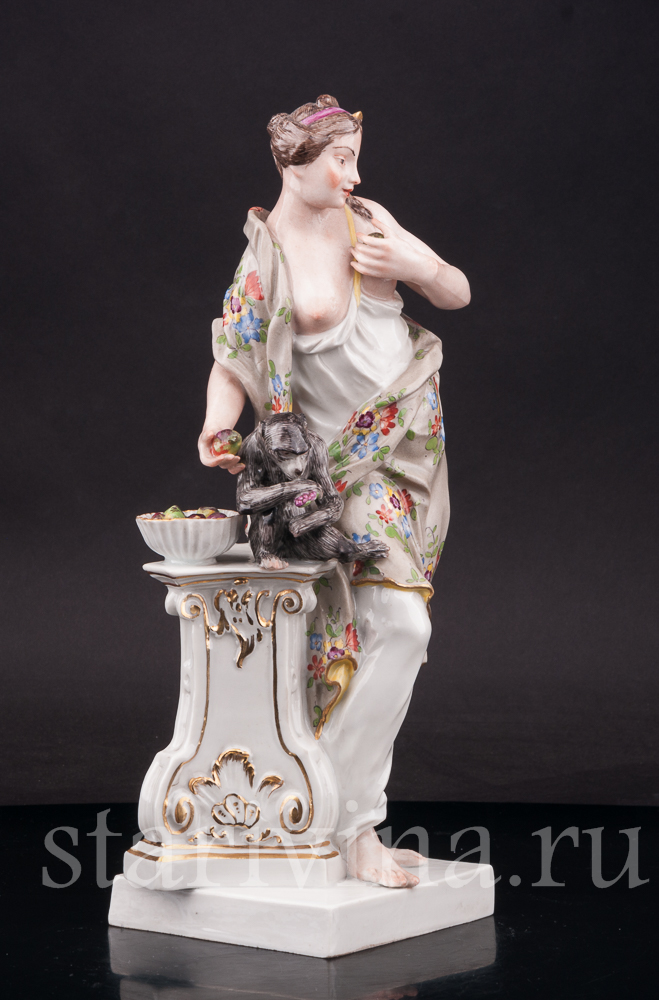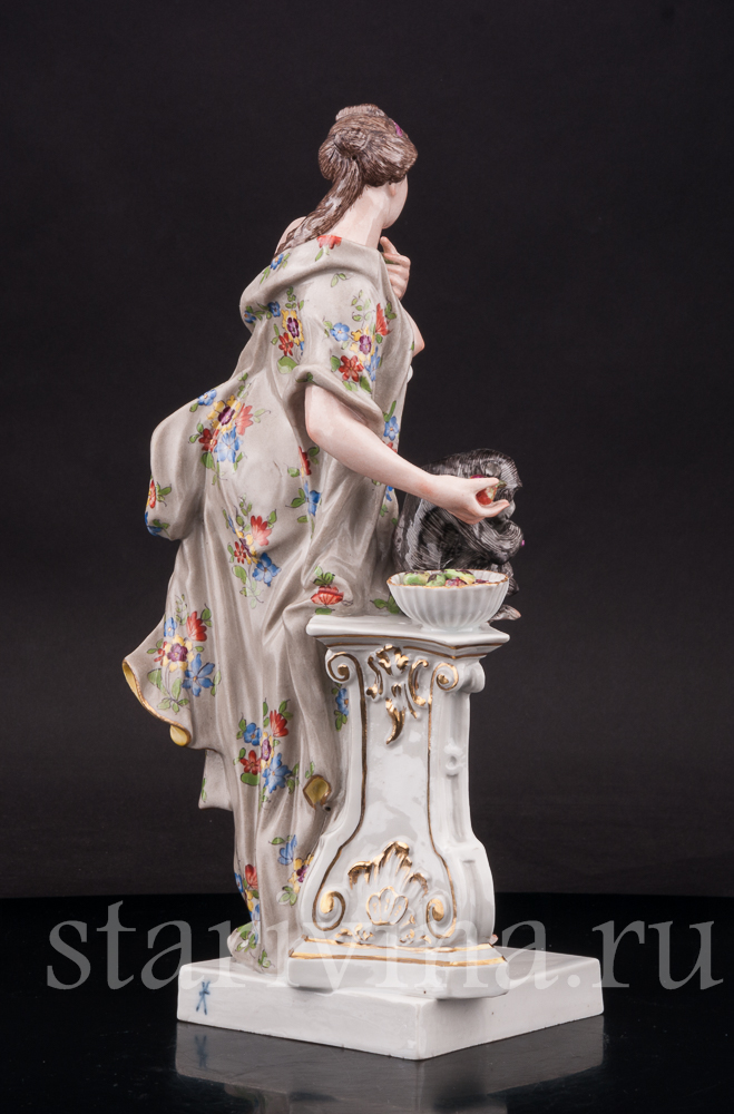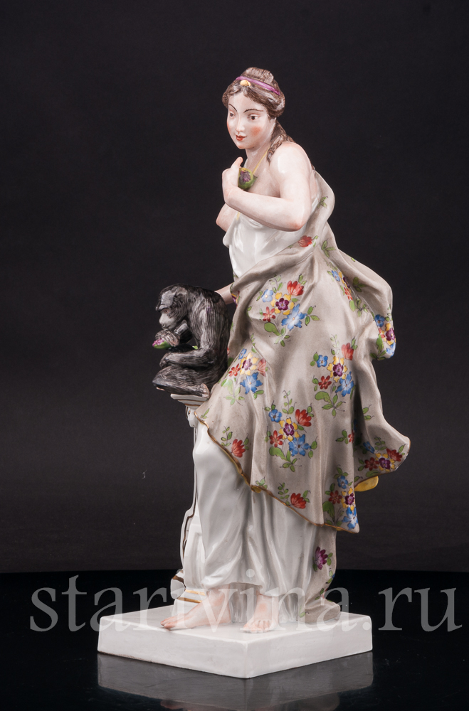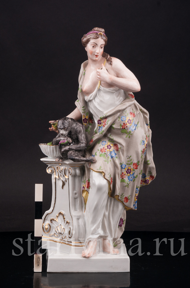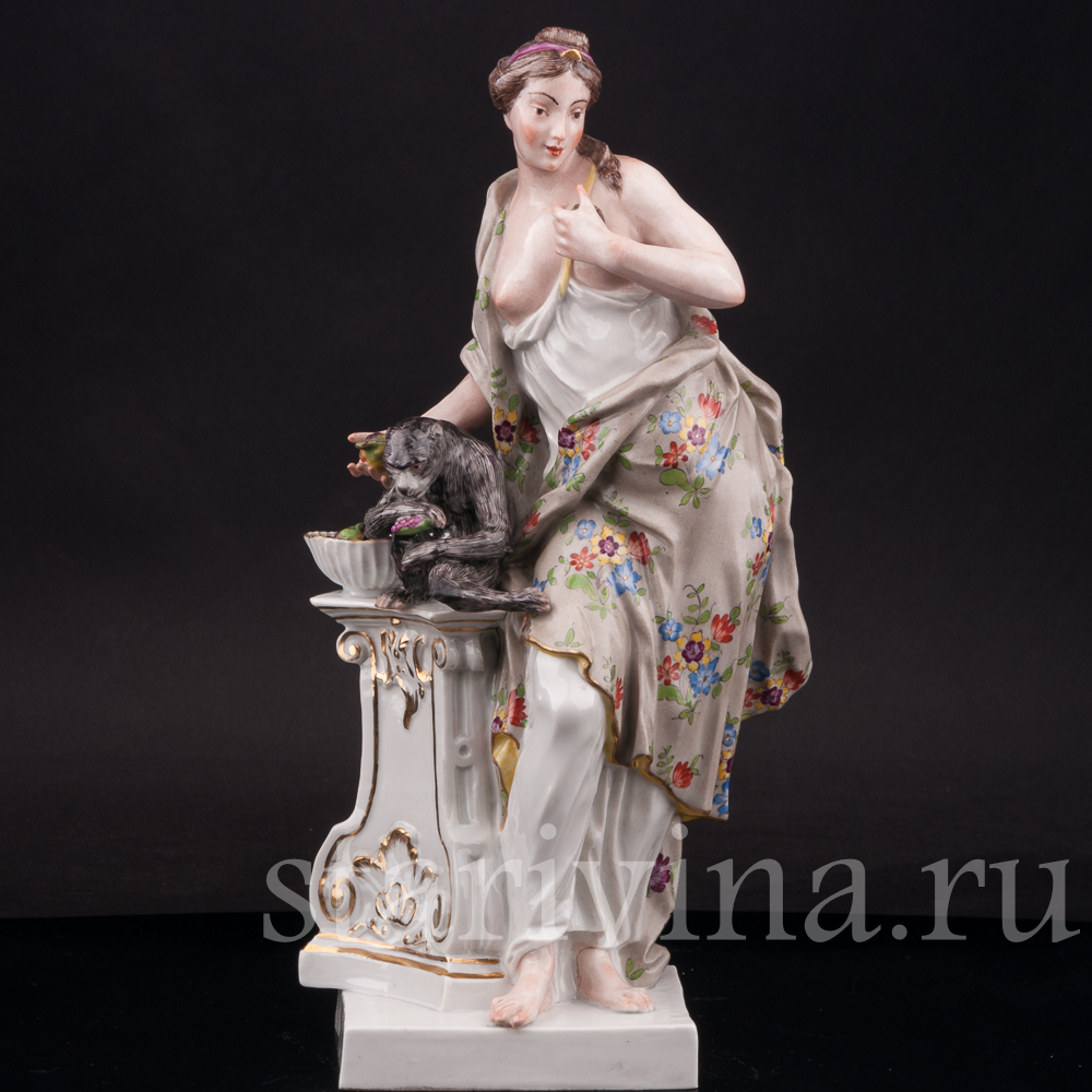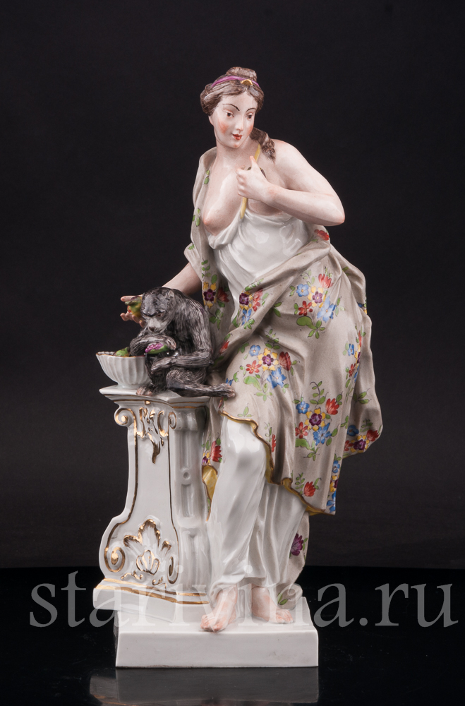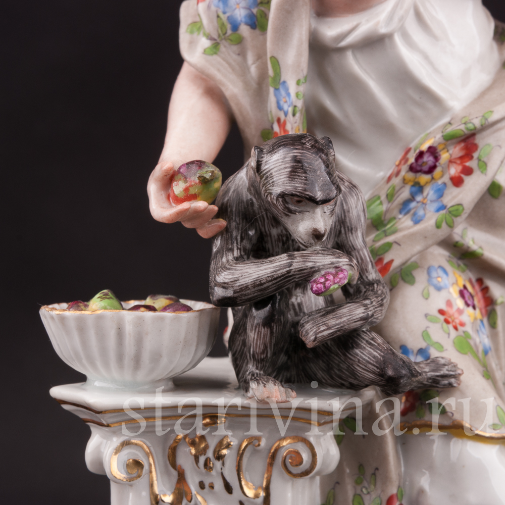Фигура девушки с обезьяной является прекрасным образчиком этого явления — выполненная в 19 веке фигура соблюдает стилистику произведений рококо более чем двухсотлетней давности.