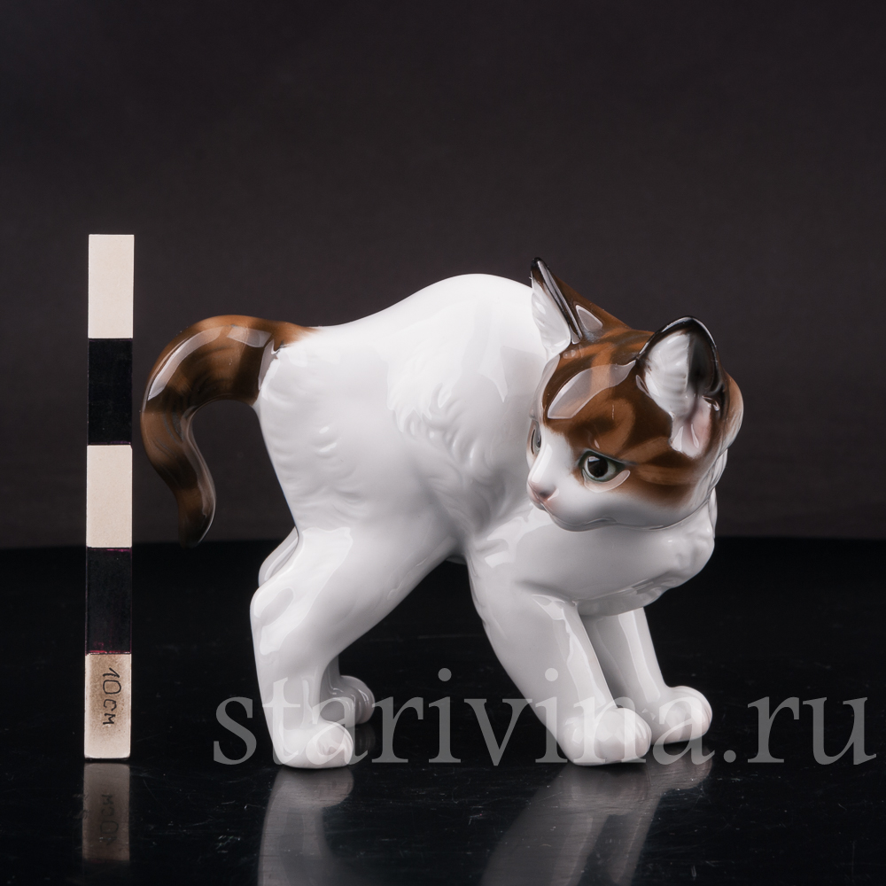 Фарфоровая фигурка Котёнок с выгнутой спинкой, Rosenthal, Германия, 1954 год.