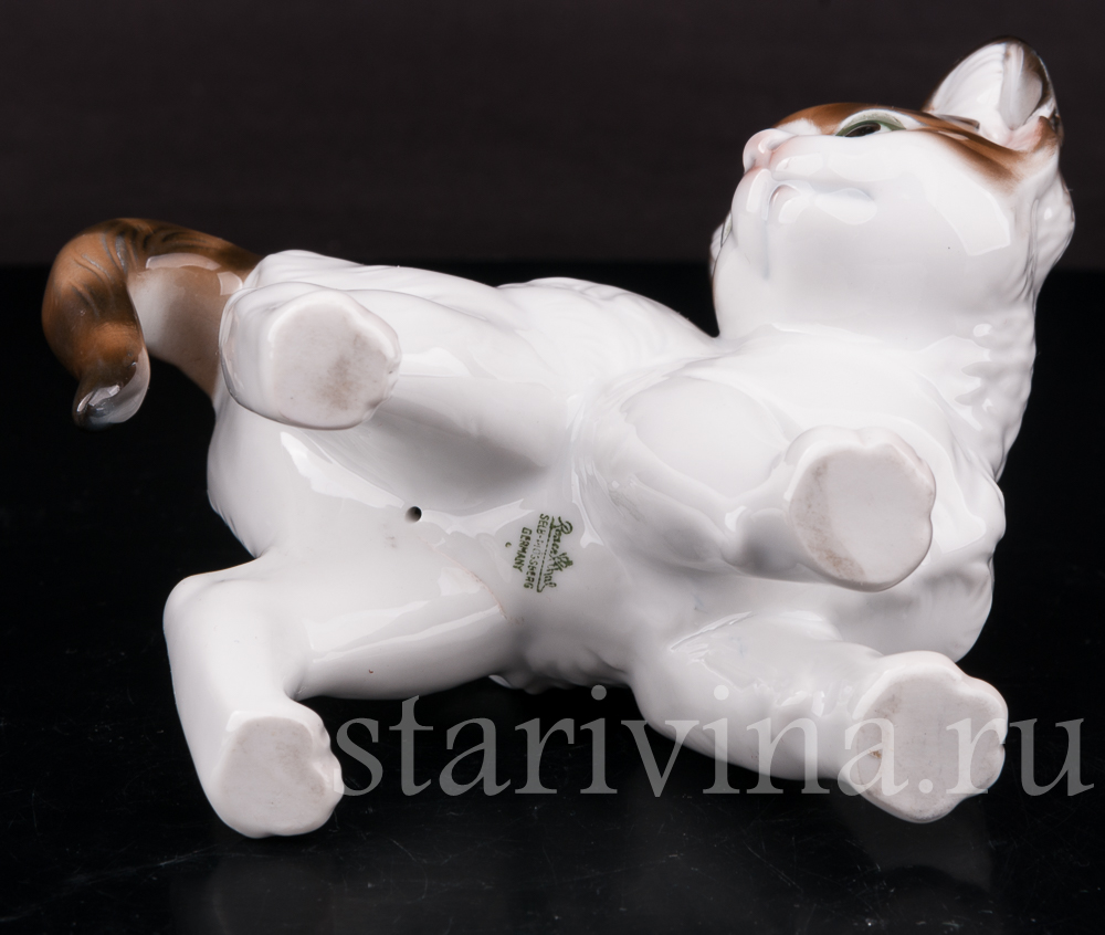 Милая старая немецкая фарфоровая статуэтка маленького котенка, выполнена на фабрике Rosenthal, ставшей символом немецкого анималистического фарфора 20 века. На этой крупнейшей фабрике трудились лучшие мастера, скульпторы и художники, среди которых особенно выделялся Теодор Кернер, автор модели данной статуэтки.