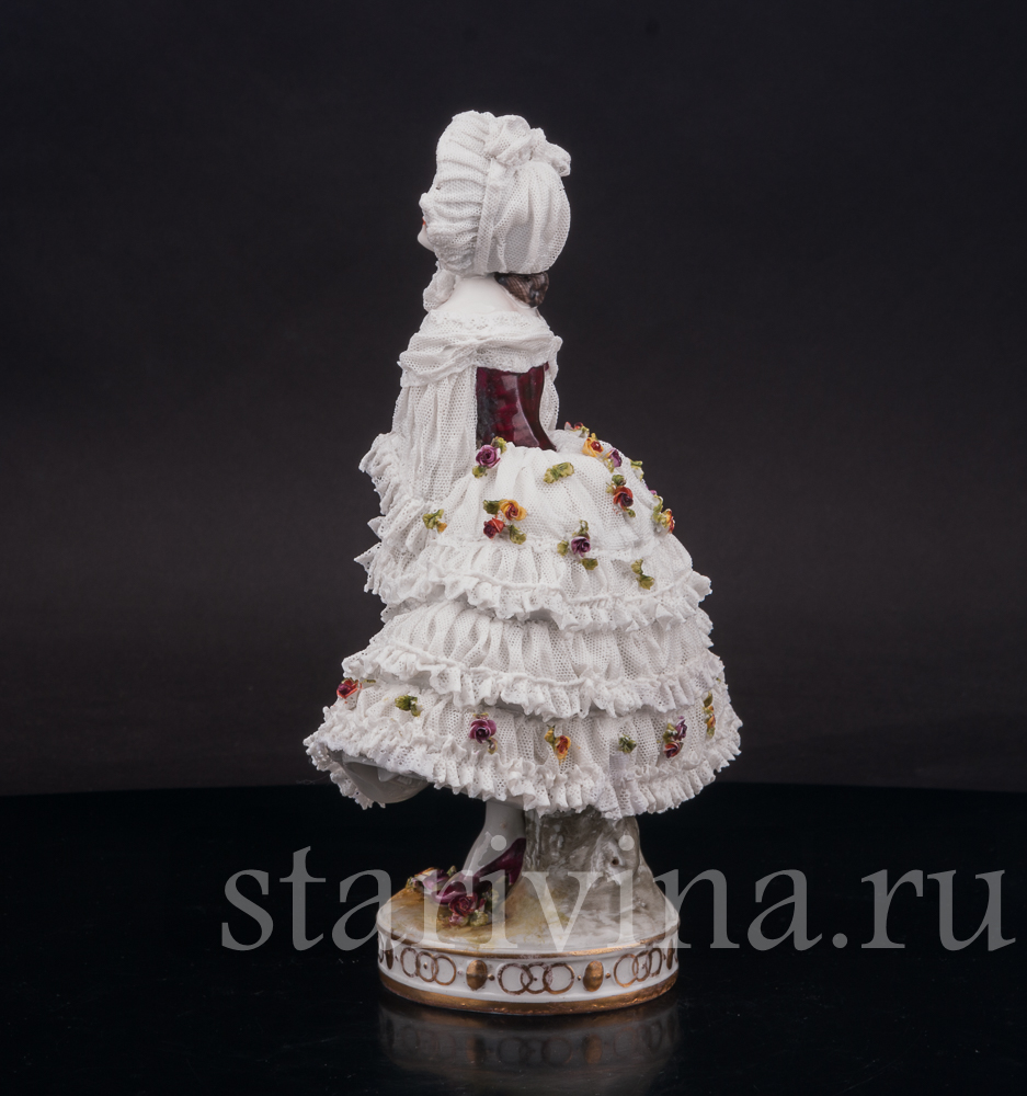 Антикварная кружевная фигура Веры Фокиной в балете Карнавал создана на фабрике в городе Volkstedt, одном из основных и крупнейших фарфоровых центров Германии. Одним из важных направлений работы этого производства с конца 19 века стало фарфоровое кружево, которое высоко ценится коллекционерами по всему миру.