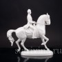 Фигурка сделана очень тщательно и весьма точно передает мельчайшие подробности тела животного, детали сбруи, фигуру и экипировку наездника, а отсутствие росписи позволят нам насладиться графичностью и строгостью линий, так умело переданных скульптором.
