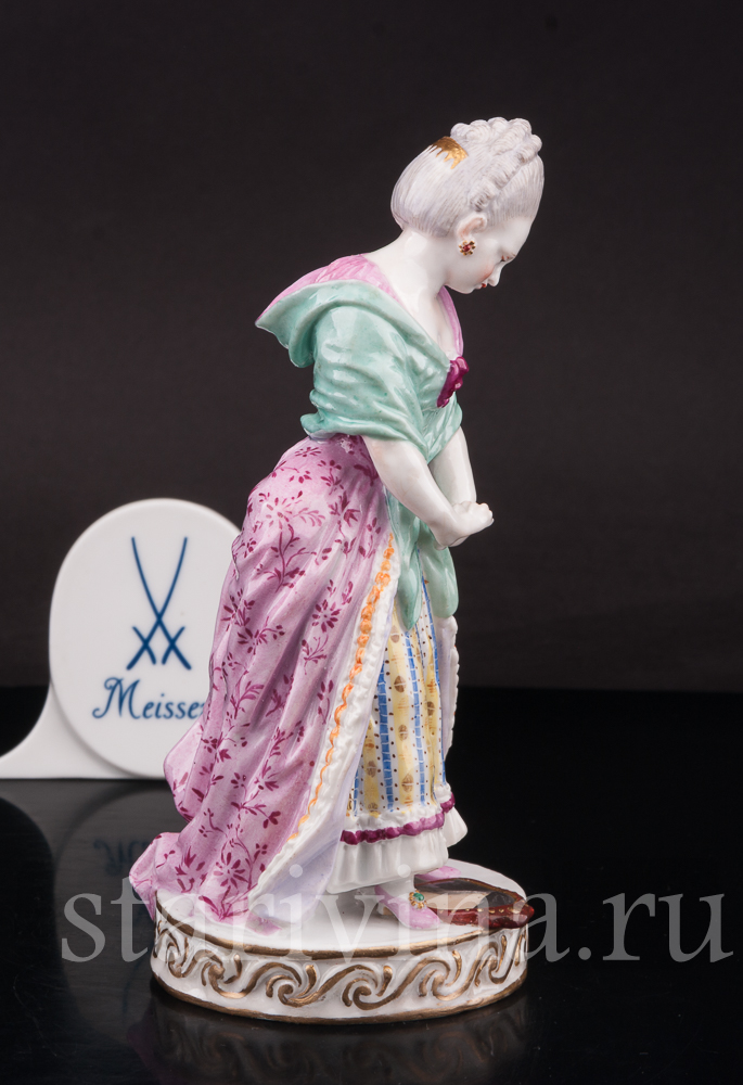 Фигурка девочки, как и все изделия мануфактуры, выделяется тонкостью и изяществом исполнения. Мелкие детали, фирменные цвета росписи, оригинальный сюжет — всё это лишний раз подтверждает высокий статус производства и непревзойденное искусство её мастеров.