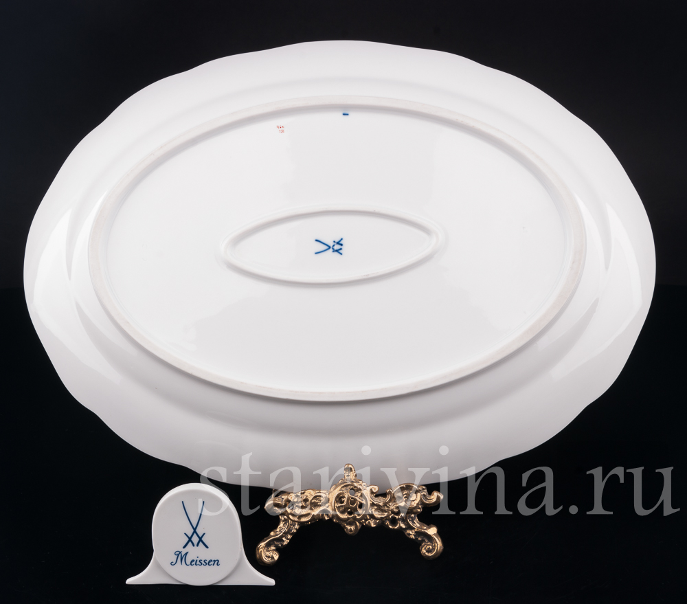 Изысканное блюдо овальной формы, производства фабрики Meissen – атрибут роскоши, достойный самого благородного дома. Открытая первой в Европе, фабрика Мейсен сохранила на века великолепное качество, белизну, твёрдость фарфора.