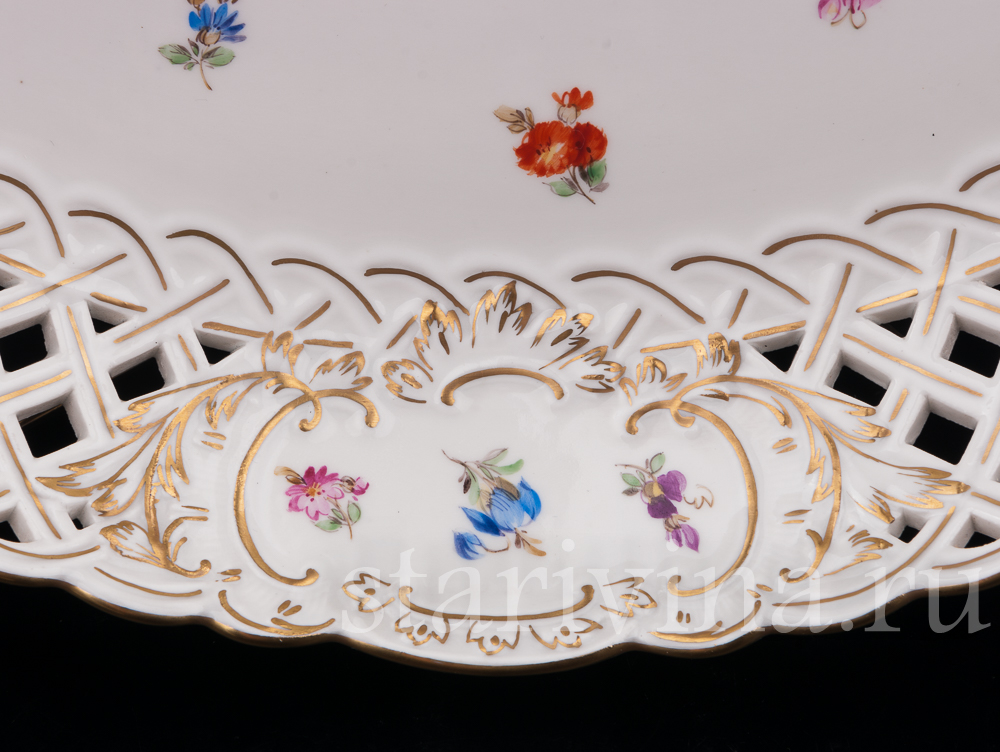 Блюдо с прорезным бортом Мейсенские цветы, Meissen, Германия, пер. пол. 20 в.