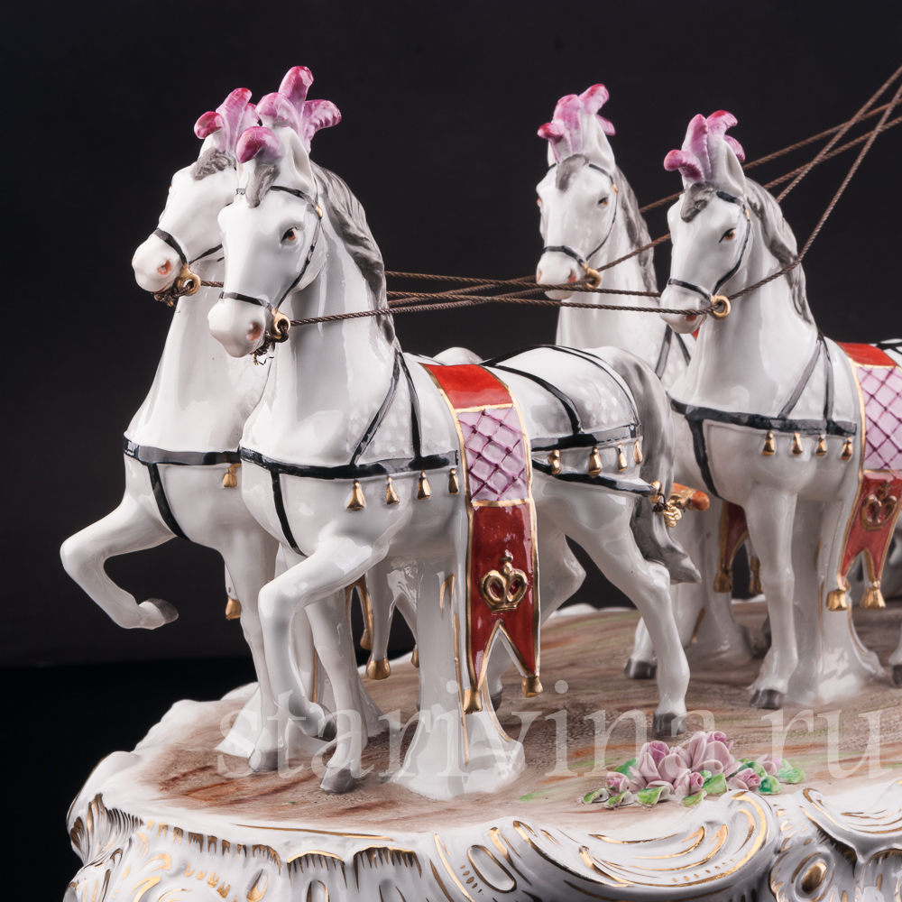 Композиция из фарфора Карета с четверкой лошадей, Sitzendorf, Германия, сер. 20 в.