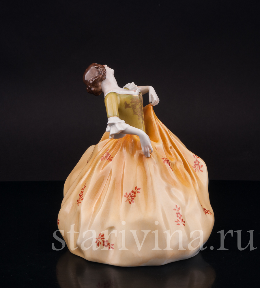Изящная фарфоровая статуэтка, запечатлевшая даму в вихре бала, – творение знаменитой фабрики Розенталь.