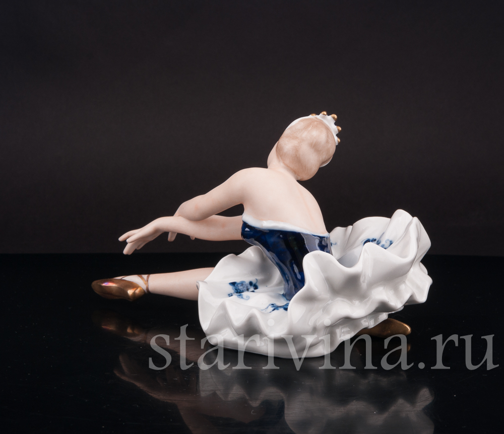 Танцующая девушка воплощает культовую балетную позу, известную по хореографической миниатюре «Умирающий лебедь», поставленной Михаилом Фокиным для Анны Павловой в 1910 году. Фигура отличается уникальной росписью Wallendorf, сочетающей подглазурную и надглазурную техники. Этот прием мастерски передает контраст между матовой кожей и сияющим бело-синим платьем, расписанным кобальтом. Эффект реалистичности и выразительности фигуры неизменно впечатляет.