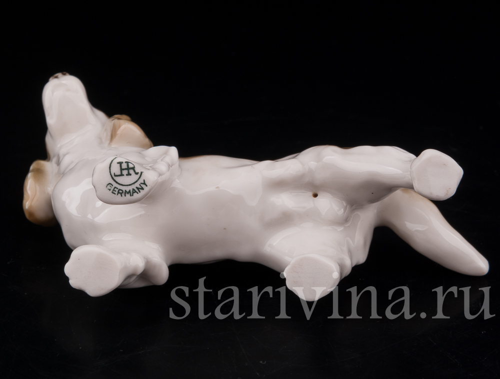 Миниатюрная статуэтка спаниеля изготовлена на фабрике Hutschenreuther, одной из крупнейших мануфактур Германии 20 века, особенно известной благодаря своим анималистическим фигурам, созданным по моделям лучших скульпторов-фарфористов своего времени.