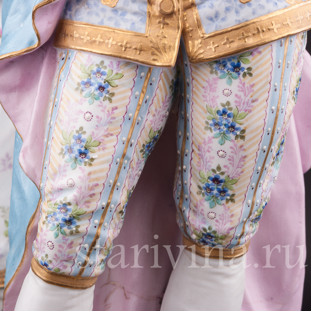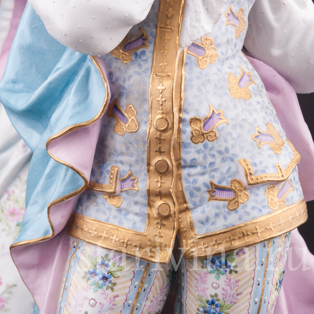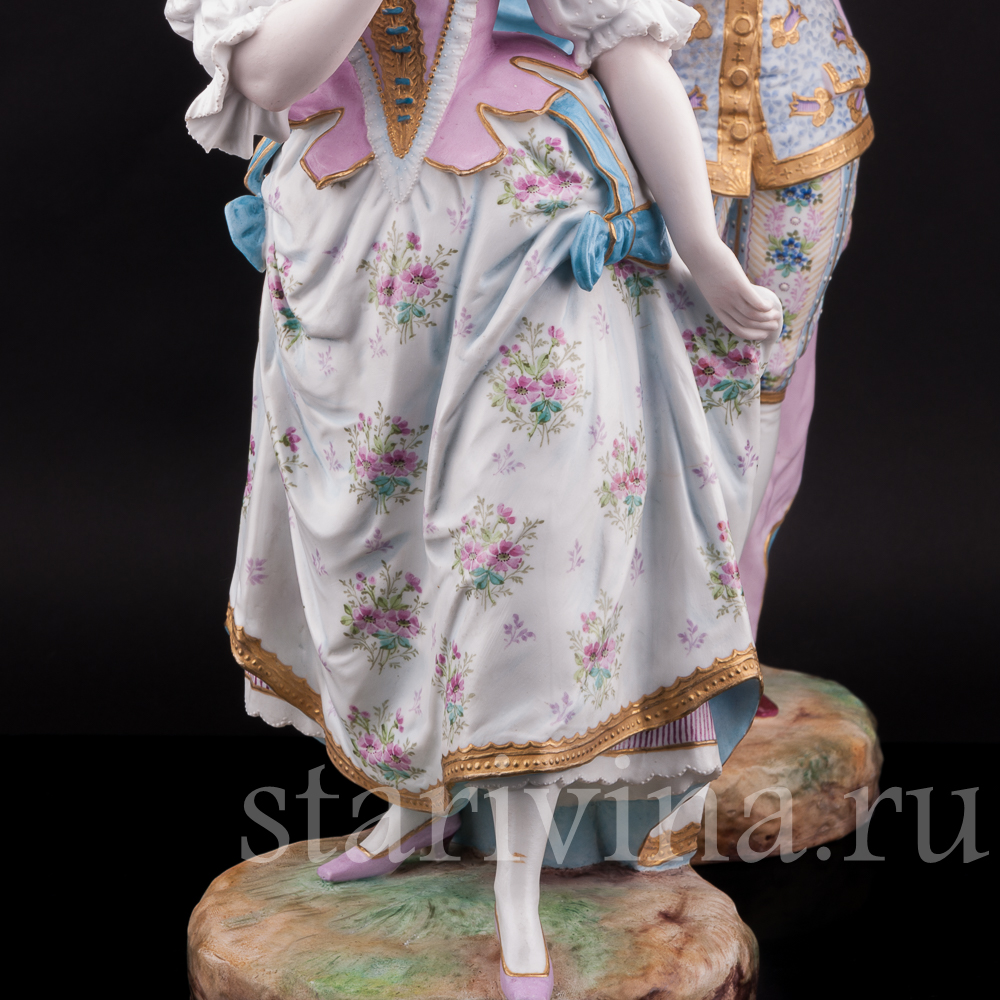 Парные фарфоровые статуэтки представляют классический образец салонной скульптуры второй половины XIX века, созданный на мануфактуре Vion & Baury. Фабрика, основанная в середине XIX столетия во Франции, прославилась утончёнными изделиями из бисквита и высоким мастерством росписи. Её произведения пользовались успехом у европейской аристократии и стали воплощением эстетики эпохи с её изящными жанровыми сценам и виртуозной художественной отделкой.