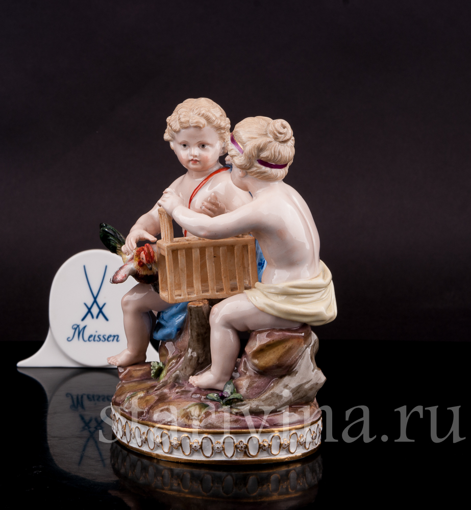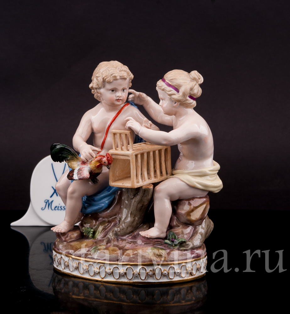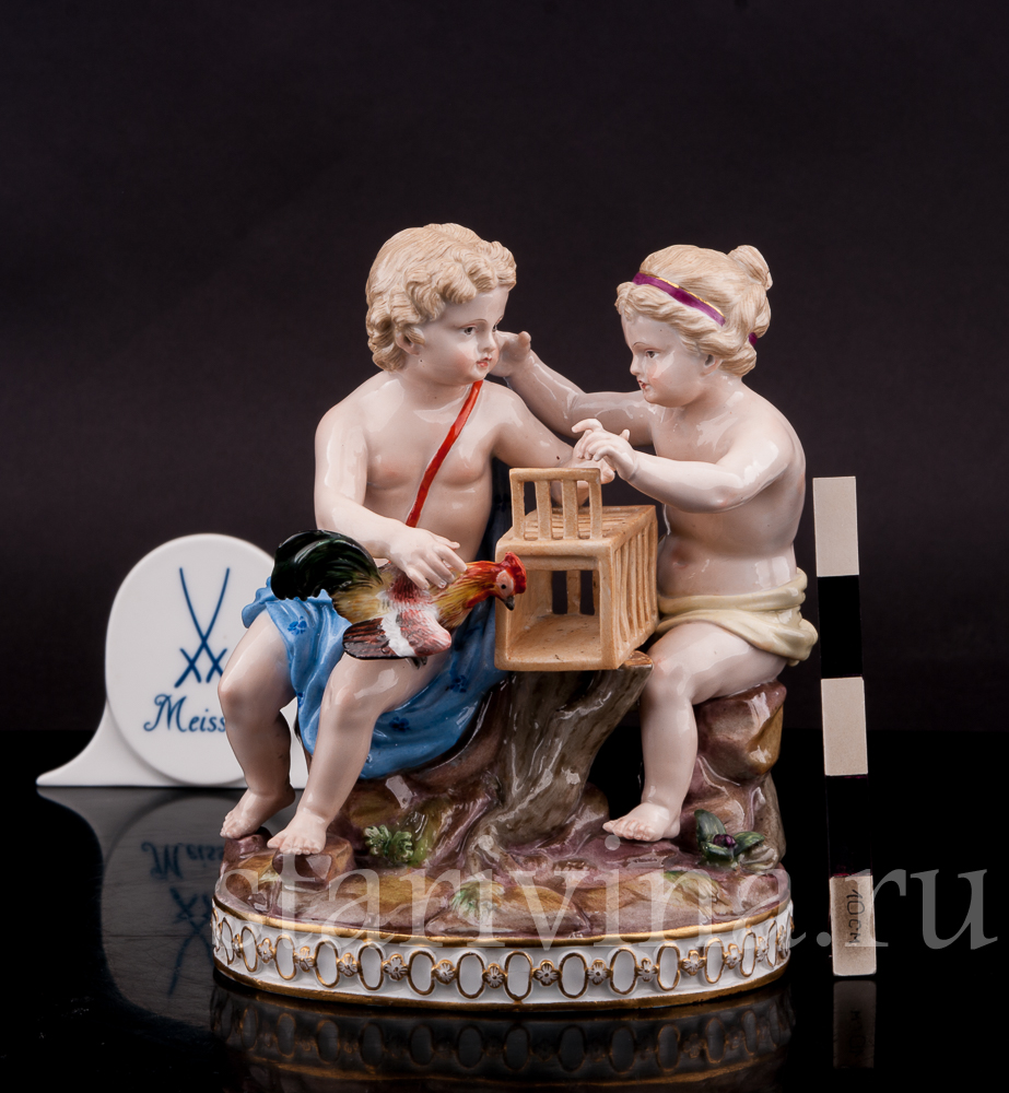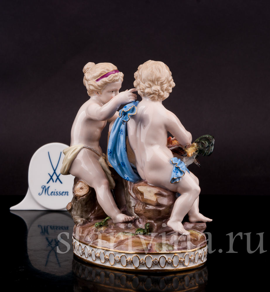 Фарфоровая статуэтка Путти с петухом, Meissen, Германия, сер. 19 - нач. 20 вв.