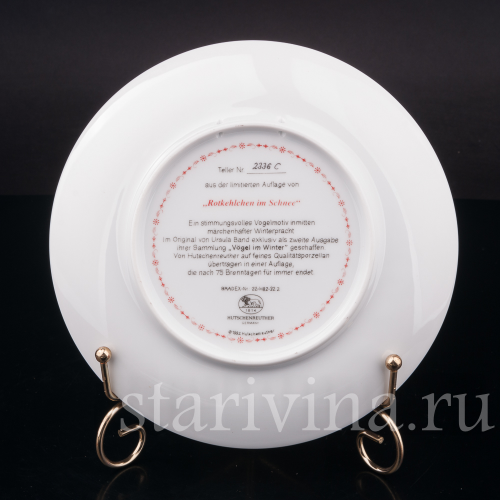 Декоративная тарелка из фарфора Малиновки в снегу, Hutschenreuther, Германия, 1992 г.